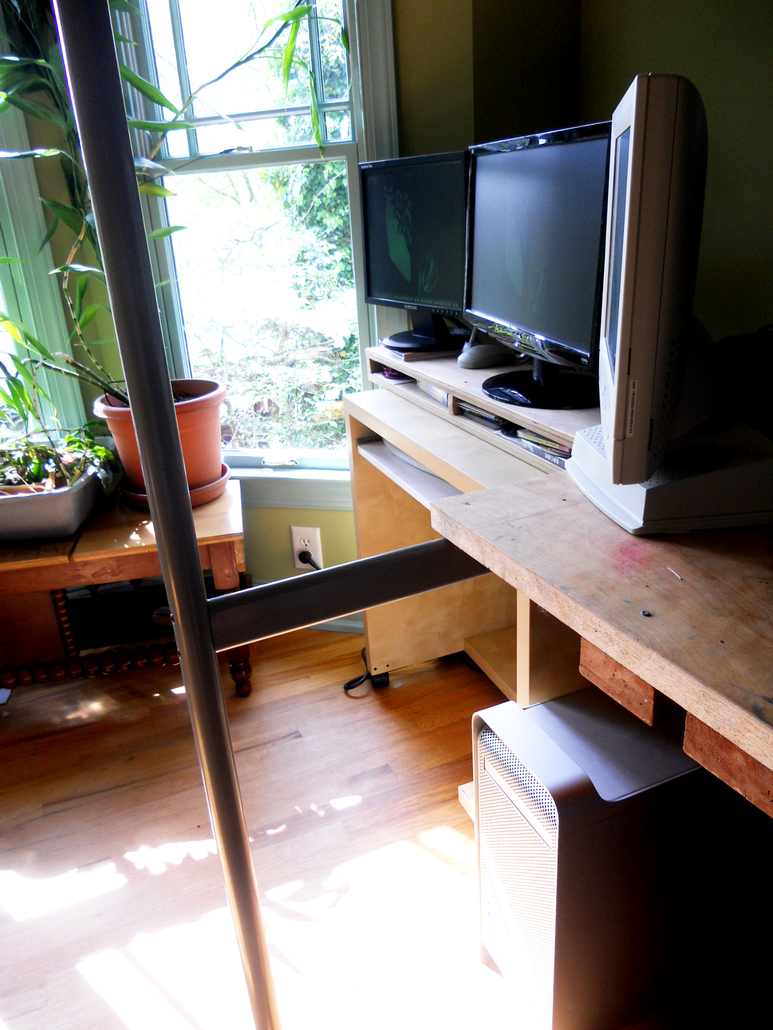 To mount the motherboard, I removed the stock standoff by popping them out with pliers, and built a motherboard tray out of the steel side panel of an old case and some aluminum flat bar.