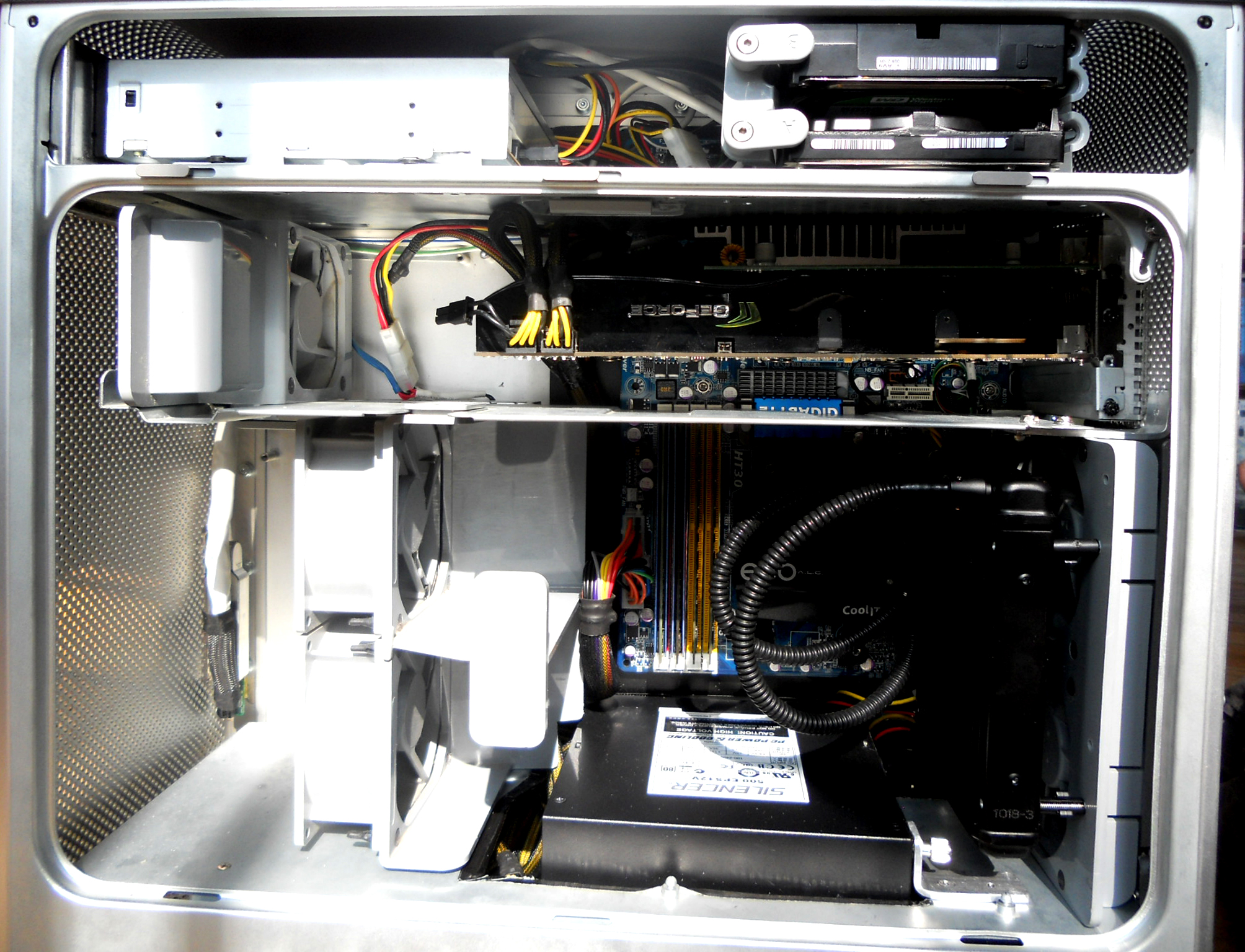 Whether you are an apple fan or not, it is hard to disagree with the fact that the Power Mac G5 computer looks great, inside and out. My goals for this project were to preserve the look of the case, inside and out; fit my PC's hardware, including a full length ATX motherboard, 2 GPU's, and a CoolIt ECO; and keep the system fully upgradeable, meaning no modifying the hardware.