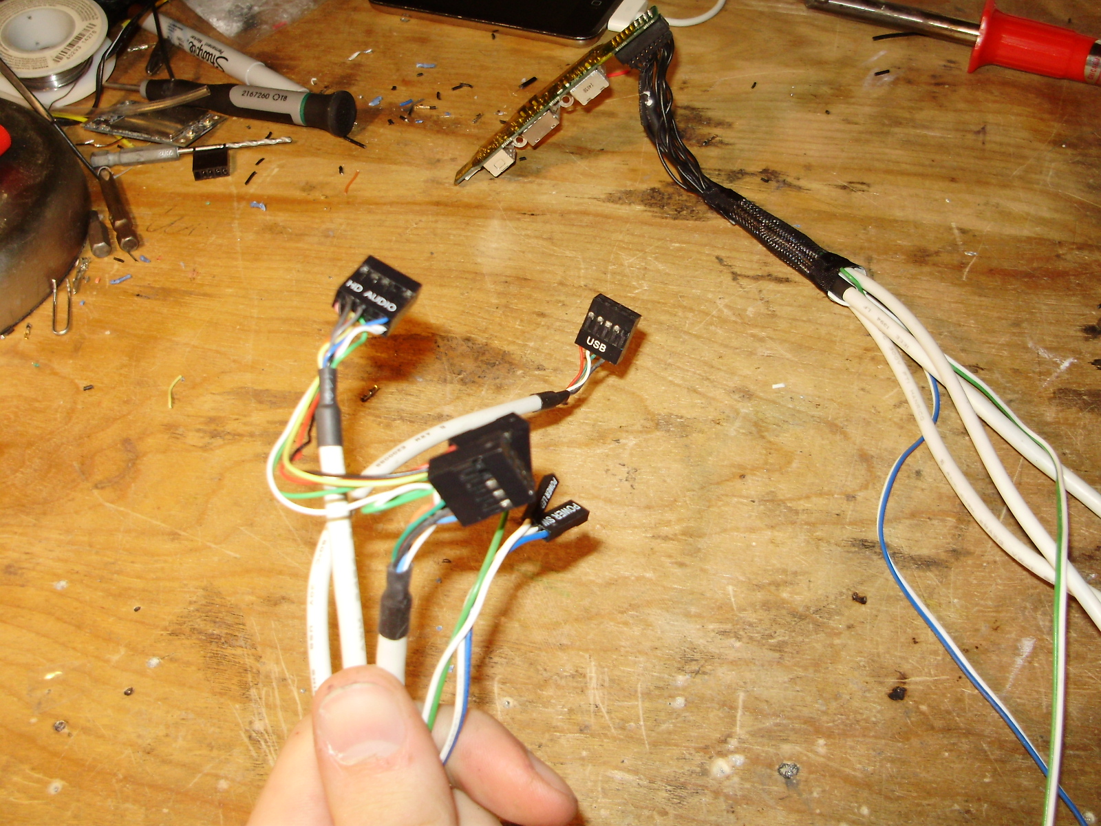 The next step was to rewire the G5's front panel to fit standard ATX headers. The wiring diagrams for this can be found in the same place as the fan pinouts.