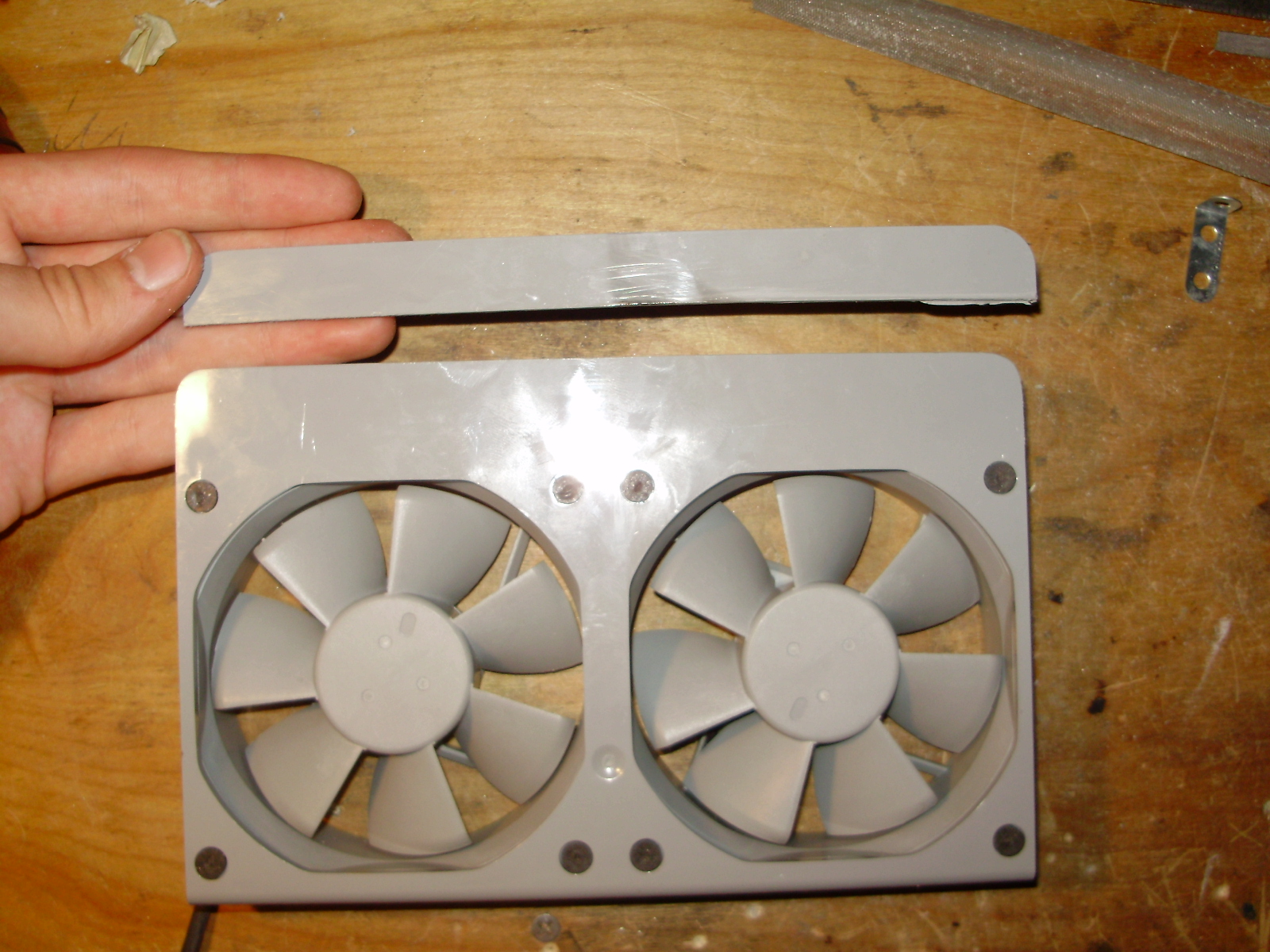 Since I had to move the fans, they stuck out of the case, so I had to cut their plastic mounting bracket shorter: