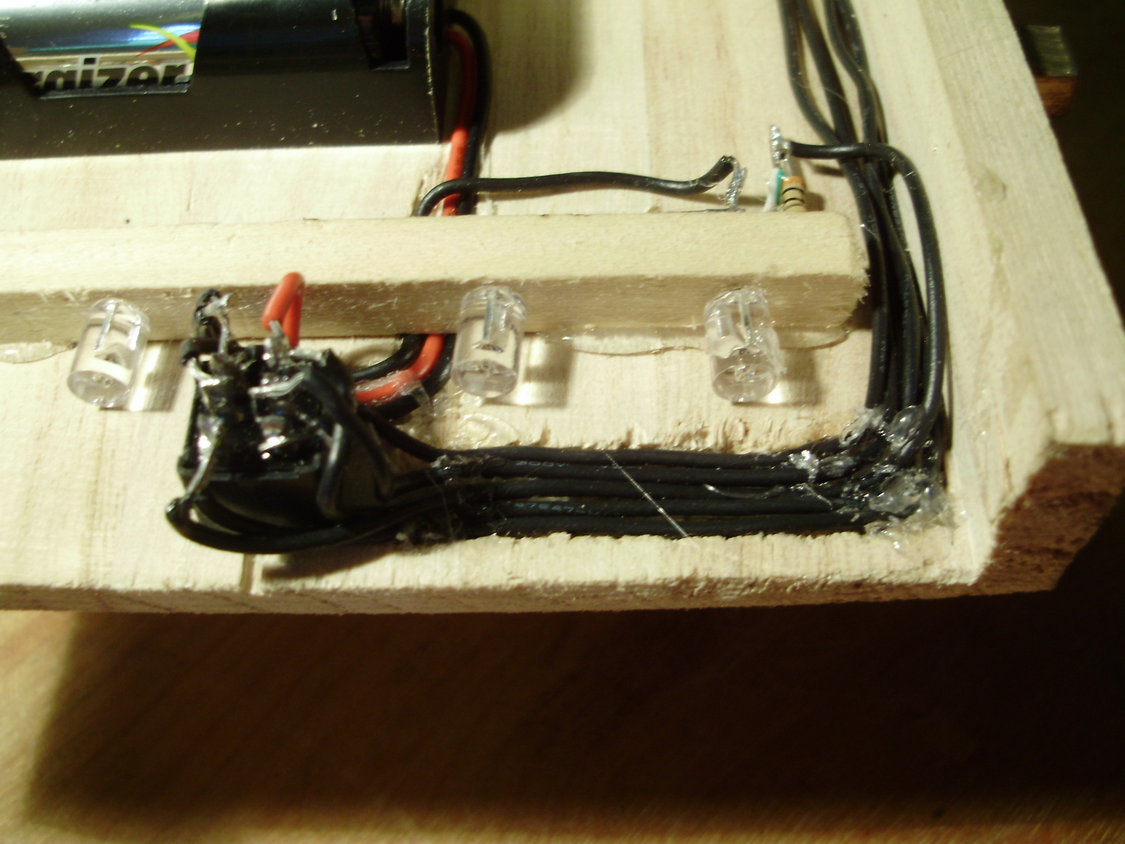 Messy wiring and DIY battery clip: