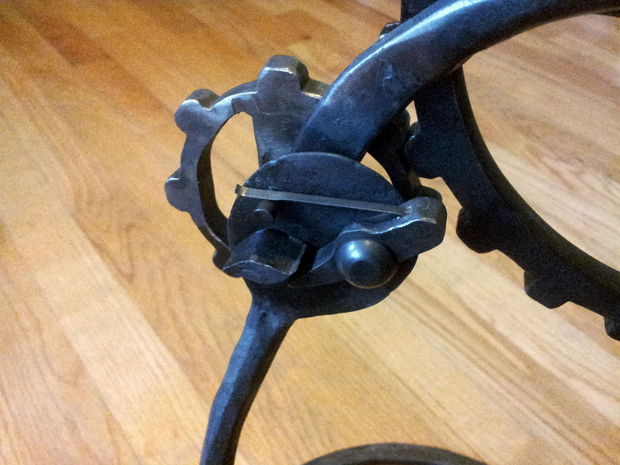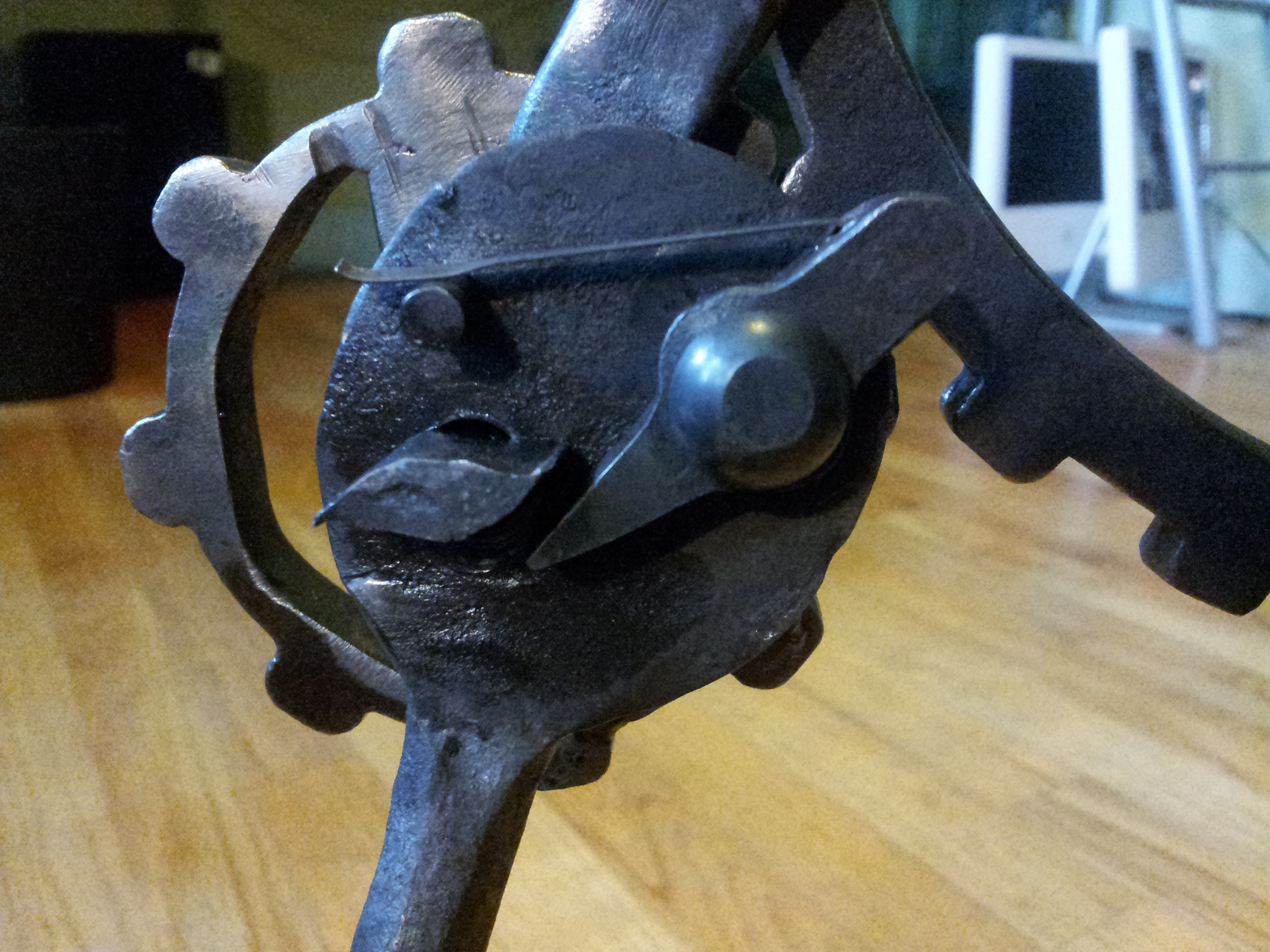 The handle was forged from a 1" pipe, and it spins freely on the crank.