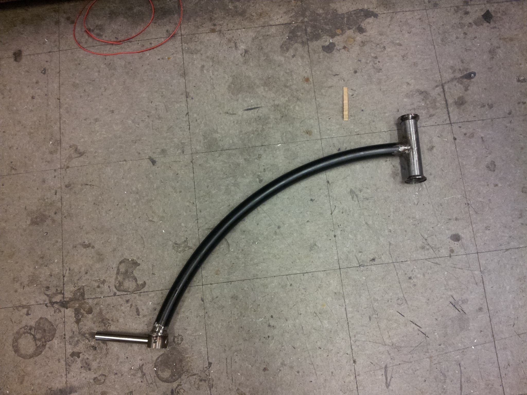 Where I left off, the front half of the tricycle's frame was mostly built, as were the bits and pieces for pivot. To connect the two halves, I made the piece below. It grips onto the rod that passes through the bushings with two set screws, to make the frame easy to take apart.