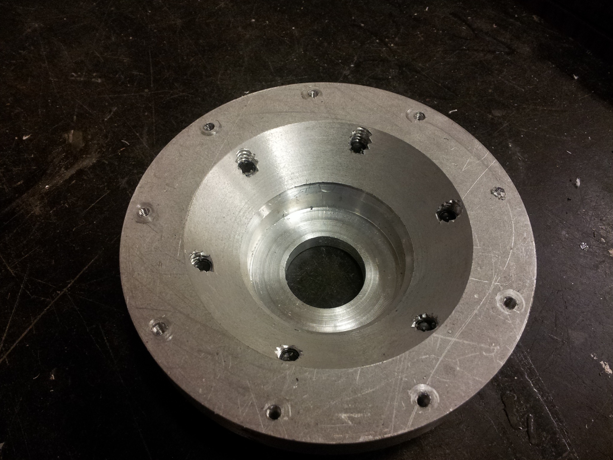 The plate that actually will hold the sprocket bolts to the fist plate. The sprocket will later be bolted to the raised center section of the adapter.