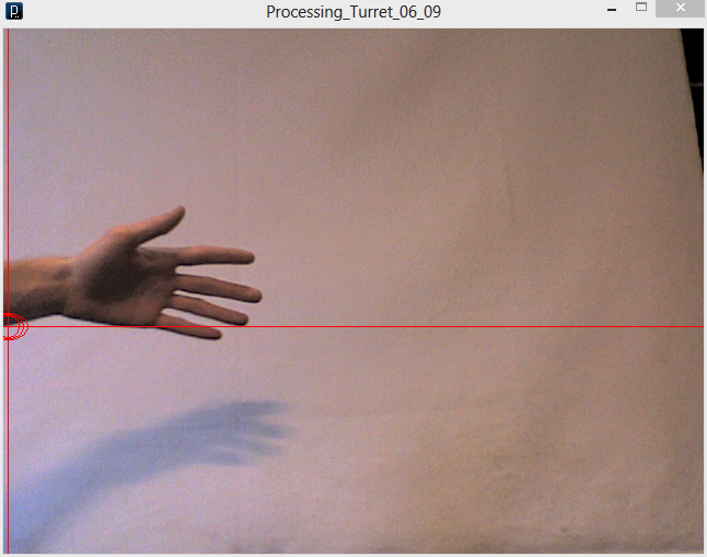 To get the Project Sentry Gun code to work for my setup, I had to make a few minor modifications. First, I completely erased the stock firing code and replaced it with one line to simply turn the fire pin on the Arduino to HIGH. Also, by default, the motion tracking bit of the software has a lower limit for the size of moving objects it will target. It locks onto the largest moving object above this threshold. In addition to the lower limit, I added in an upper limit, so the turret will track things that are roughly mouse-sized, but will ignore larger things like people.