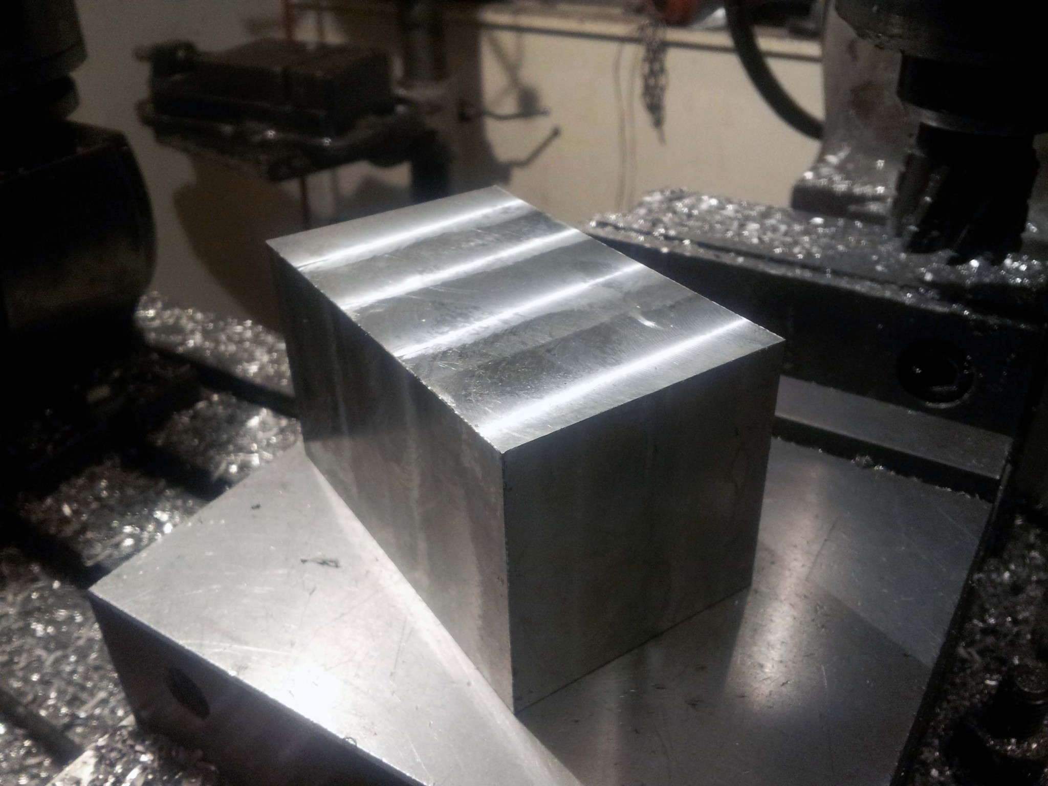 I made the new one much better looking. I started out by facing all six sides of a large chunk of aluminum, which used to be part of an even larger billet that found its way to MITERS from the CSAIL stock room.