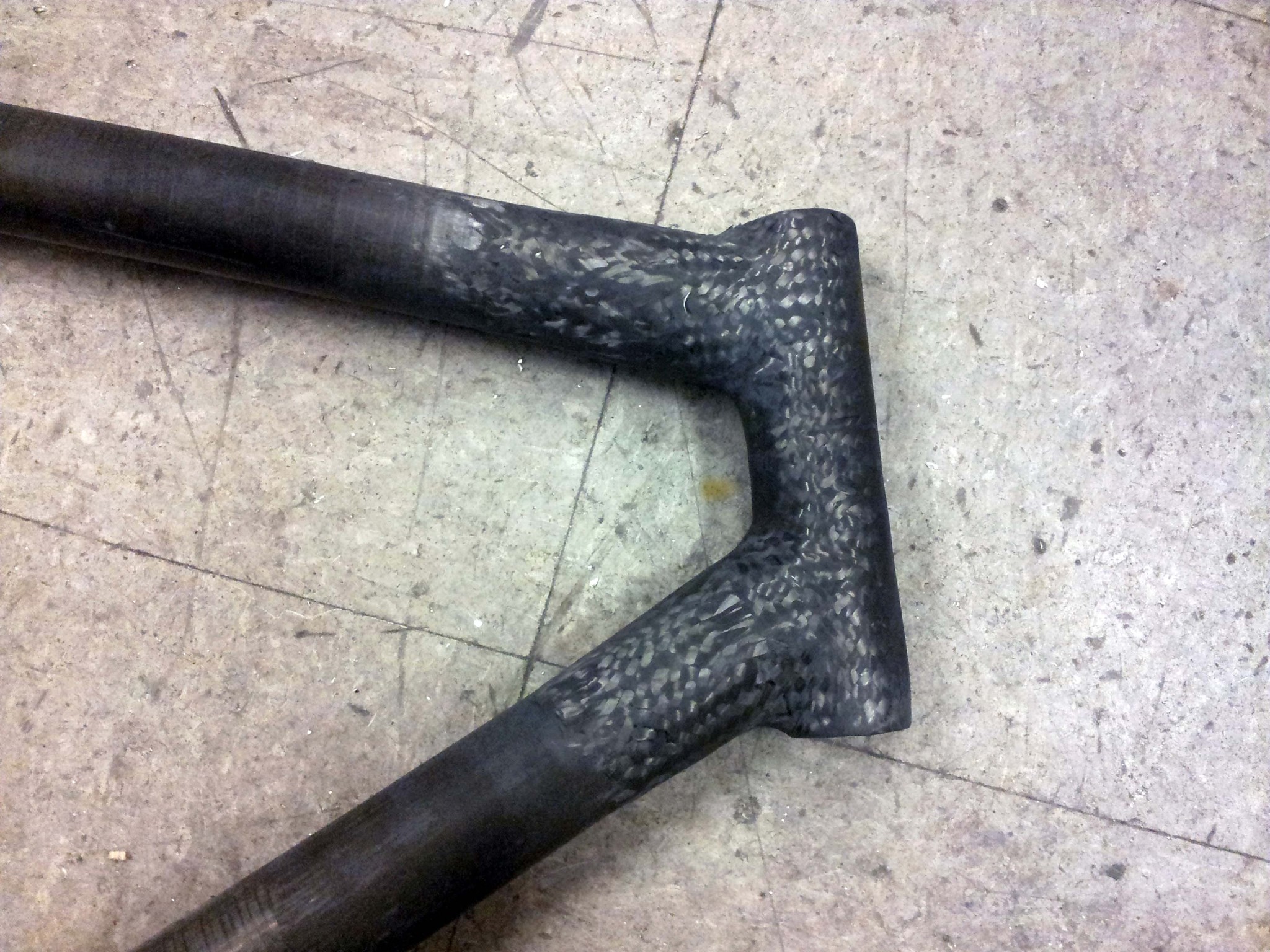 I made the seatstays using pretty much the same process as I did for the chainstays, but with carbon fiber cloth instead of bundles of tow. I plan on adding an aluminum insert for the rear brake to clamp into.