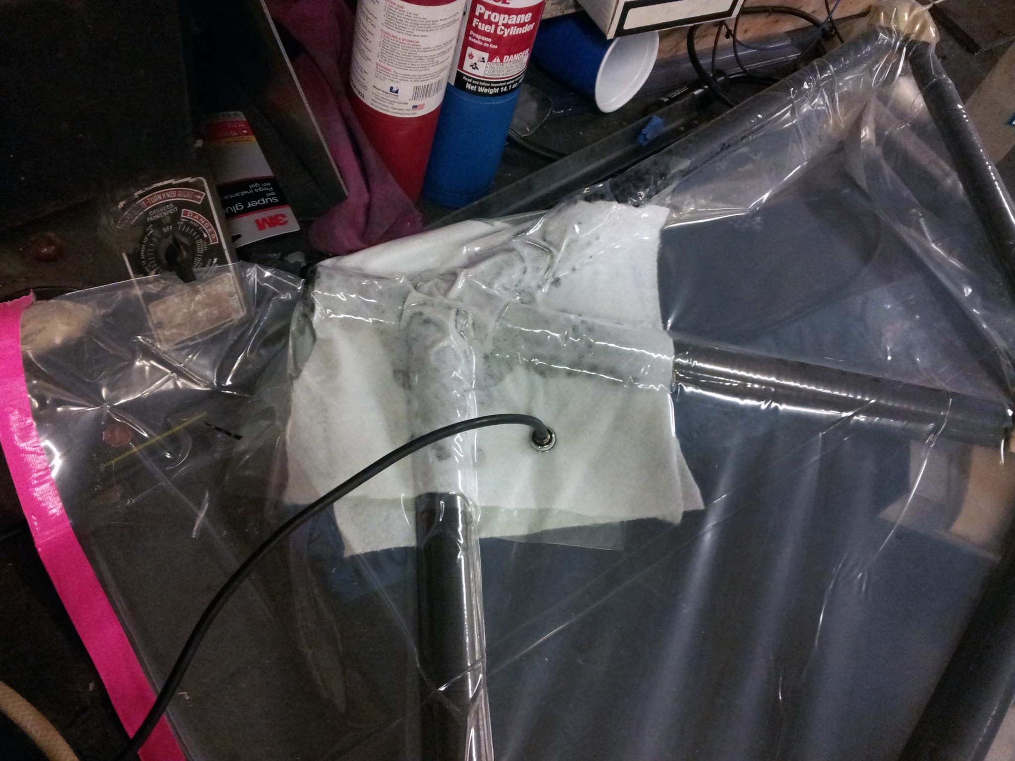 In an effort to make my vacuum bagging technique slightly more legitimate, I used peel ply and some resin-absorbing cloth around the seat cluster. Unfortunately, this joint had pretty severe seams around the edges, but I don't know whether they are due to the the cloth or the mediocre vacuum I was able to get.