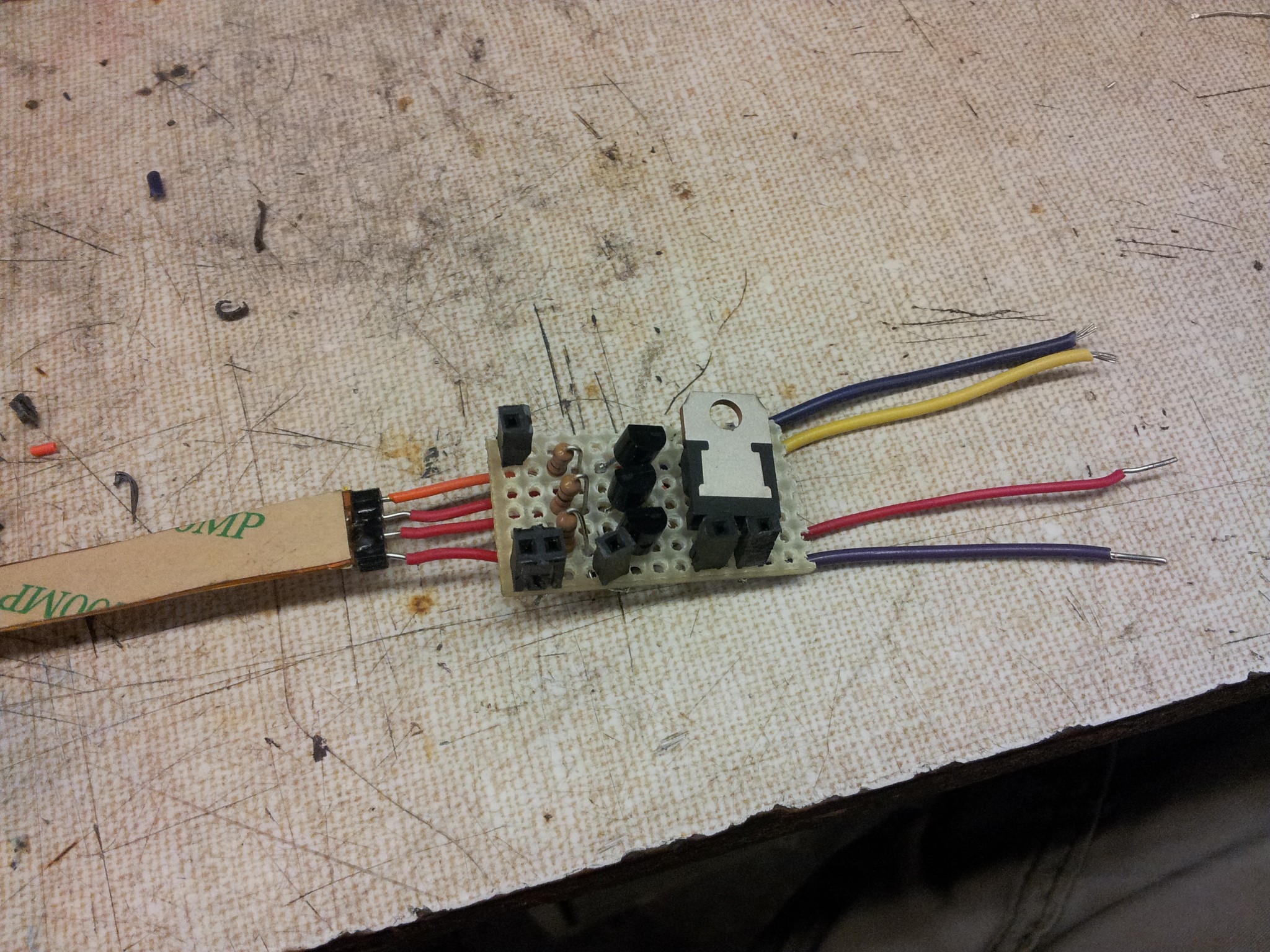 This little circuit has some NPN transistors and a 7805 voltage regulator on it.