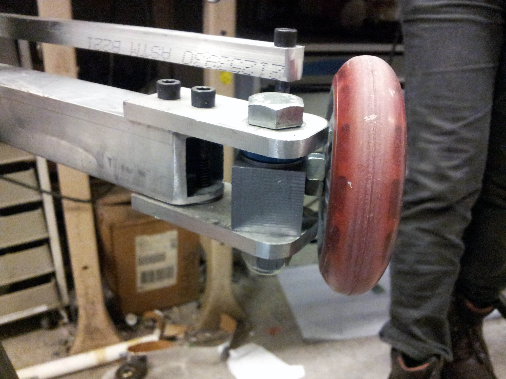 To test the handling, we pushed it around with some clamps attached as temporary handlebars: