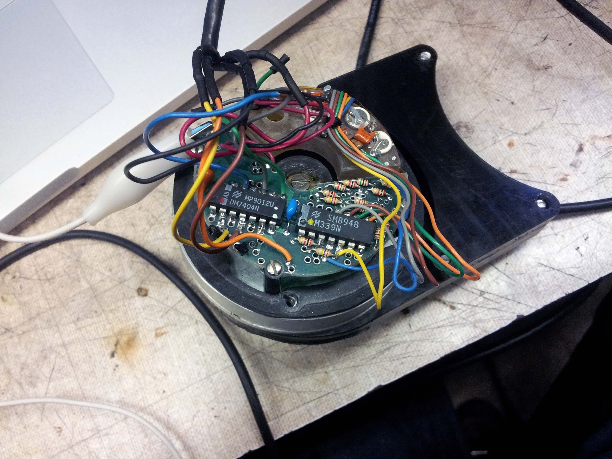 While doing all this testing, all of a sudden the readings from one of my encoders got stuck. I probed the encoder outputs, and found that one channel was stuck high. I cracked open the encoder to investigate further, and found this: