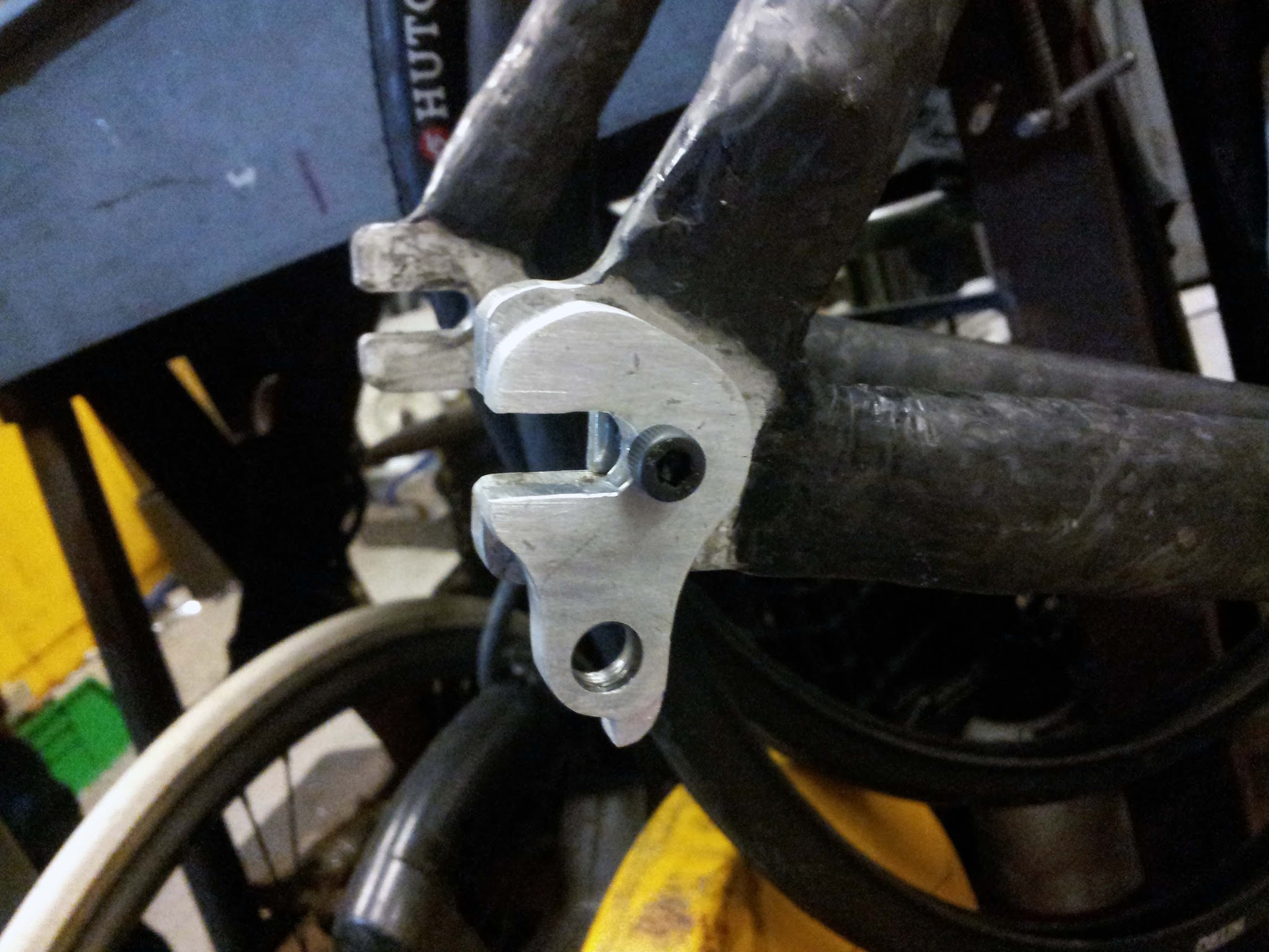 The hanger clamps to the old dropouts with a small bolt and nut on the other side: