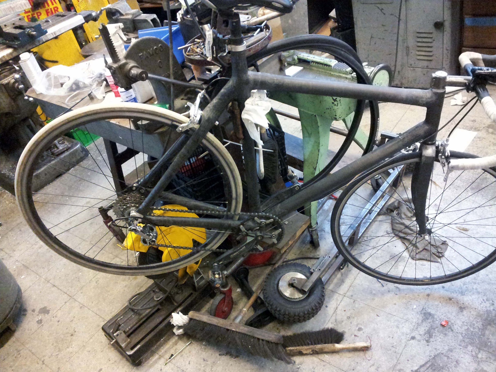 Over spring break I added a cassette, rear derailleur, and shifter to the carbon bike. The shifter and derailleur were taken off my now unused bamboo bike, while the cassette was scrounged from MITERS.