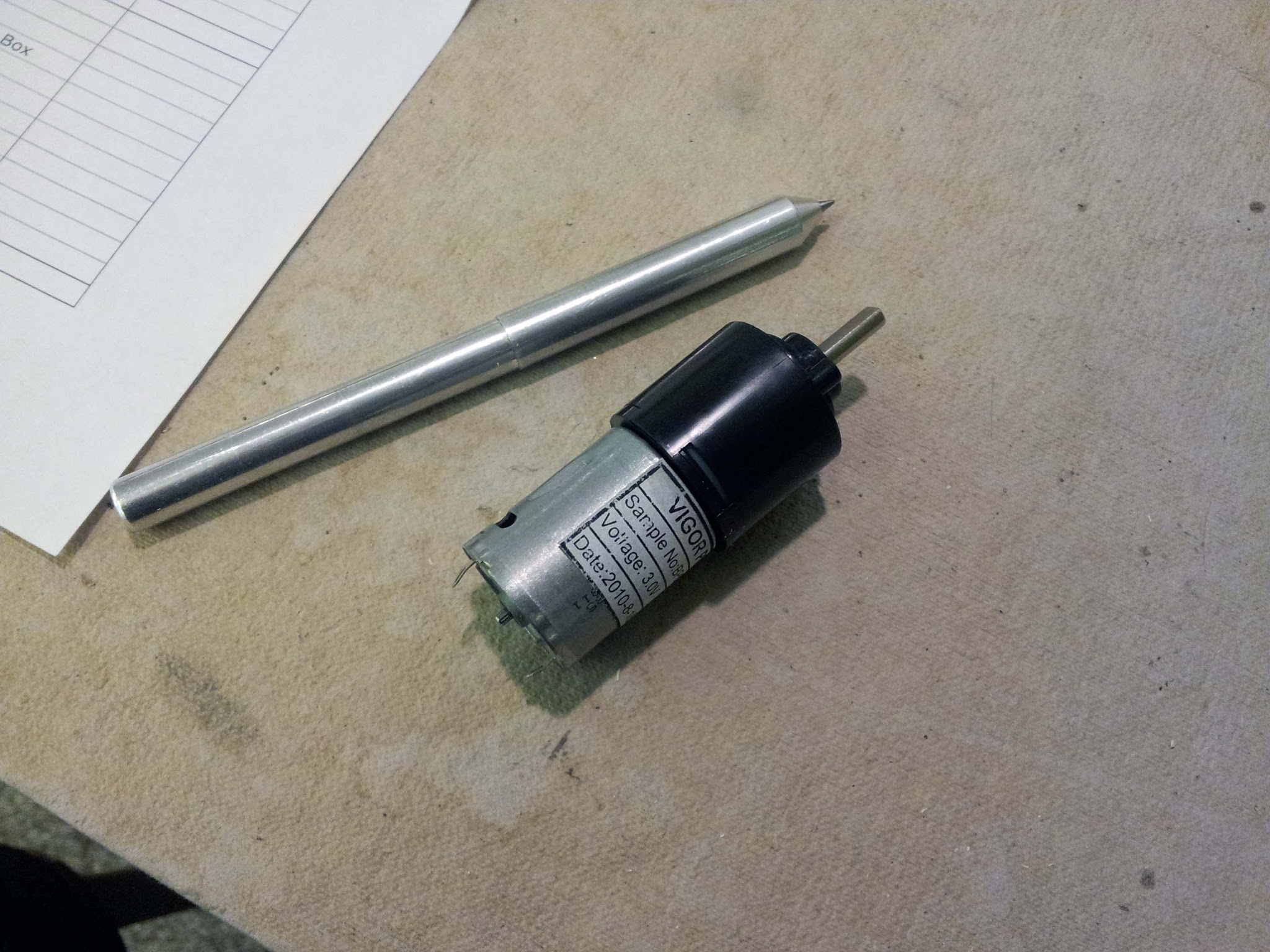 The workhorse motor of 2.007 is the BO-P5 planetary gearmotor. It's a cute little 3V DC motor with 40:1 planetary gearbox. There's also a version with a 120:1 gearbox. These things are rated for around 3W peak at 3V. They seem perfectly happy to run straight off the 7.4 volts from a 2S LiPo though (although the 2.007 staff frown upon this practice, preferring you to power them off the 5V regulator on the provided arduino carrier board).