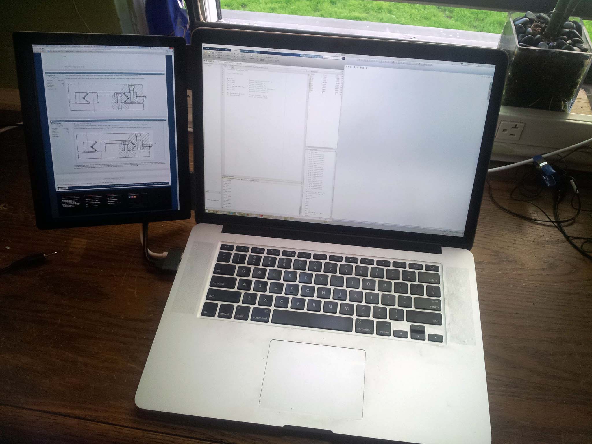 Two summers ago I bought an iPad 3 LCD off ebay. These are 9.7" 2048 x 1536 IPS panels, which use an internal DisplayPort interface. In May, I finally got around to building an external display out of the panel, which can be clipped directly onto the side of my Macbook Pro's screen, and is powered by a USB port.