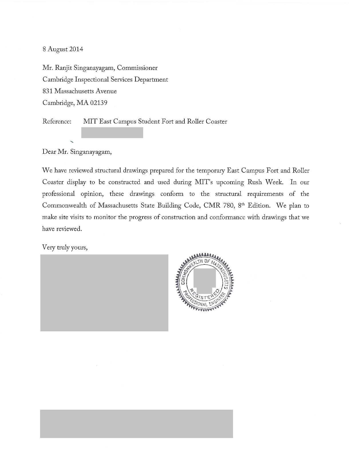 It was worth it though when we got a letter to the Cambridge building commissioner, approving our structure: