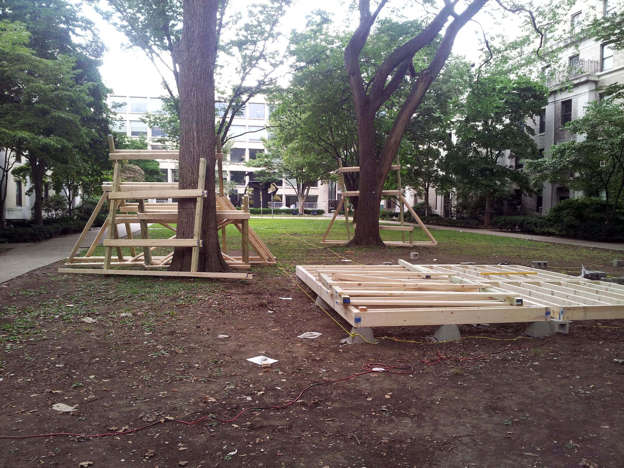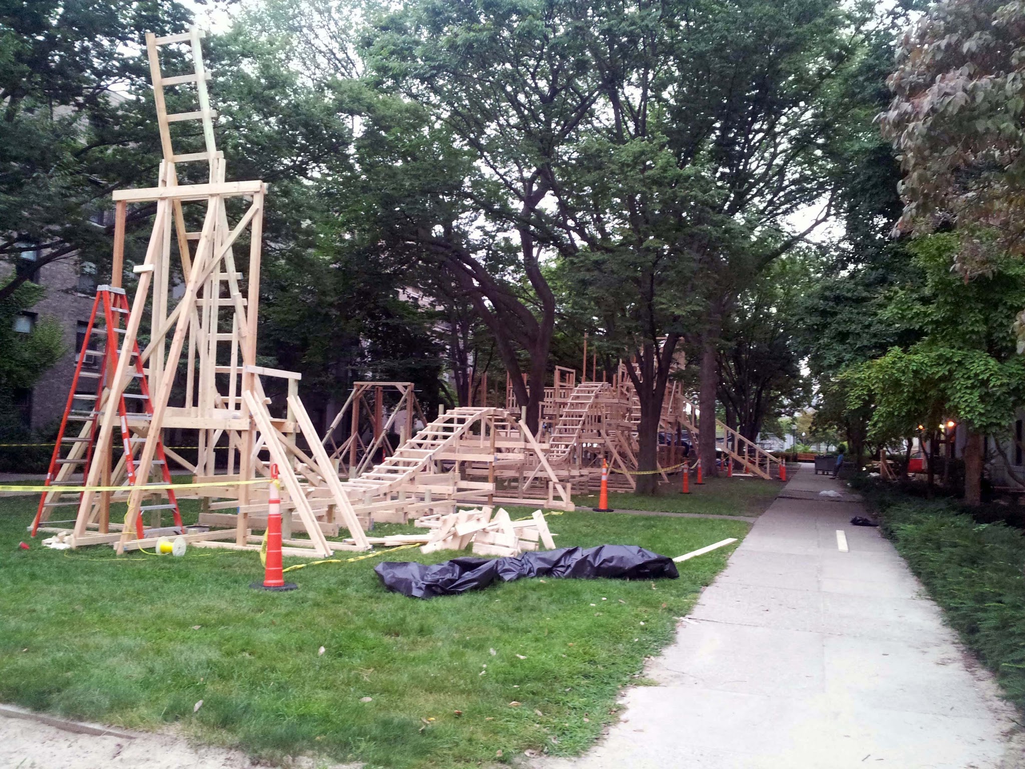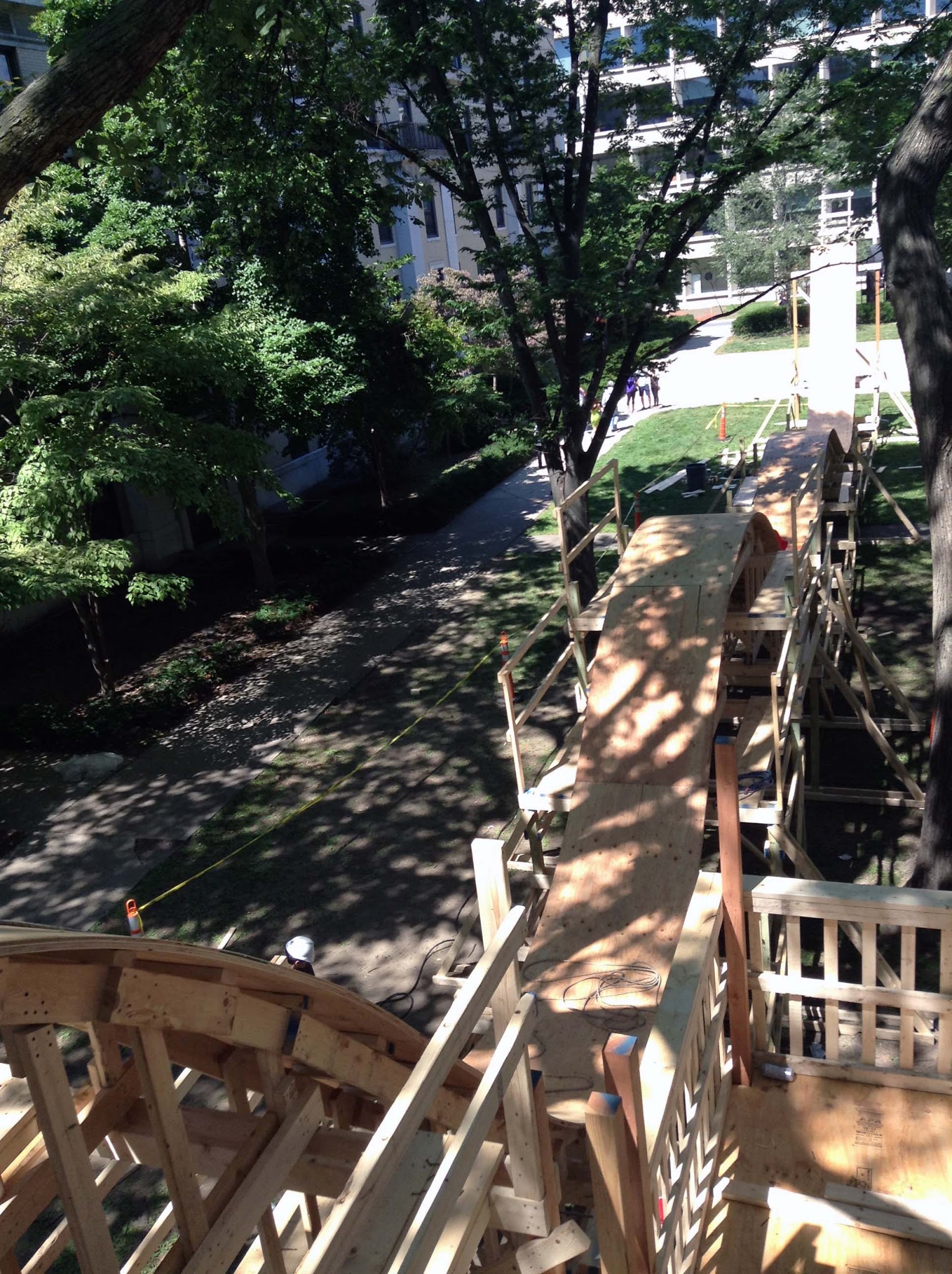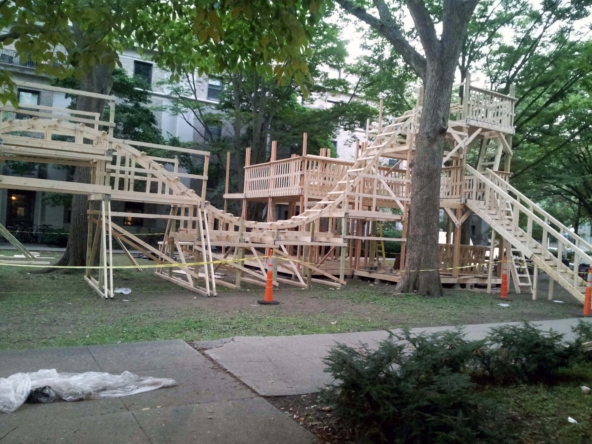Construction took place over a week, and was done by a combination of East Campus residents, incoming freshmen, a few students from other dorms, and a few random strangers.