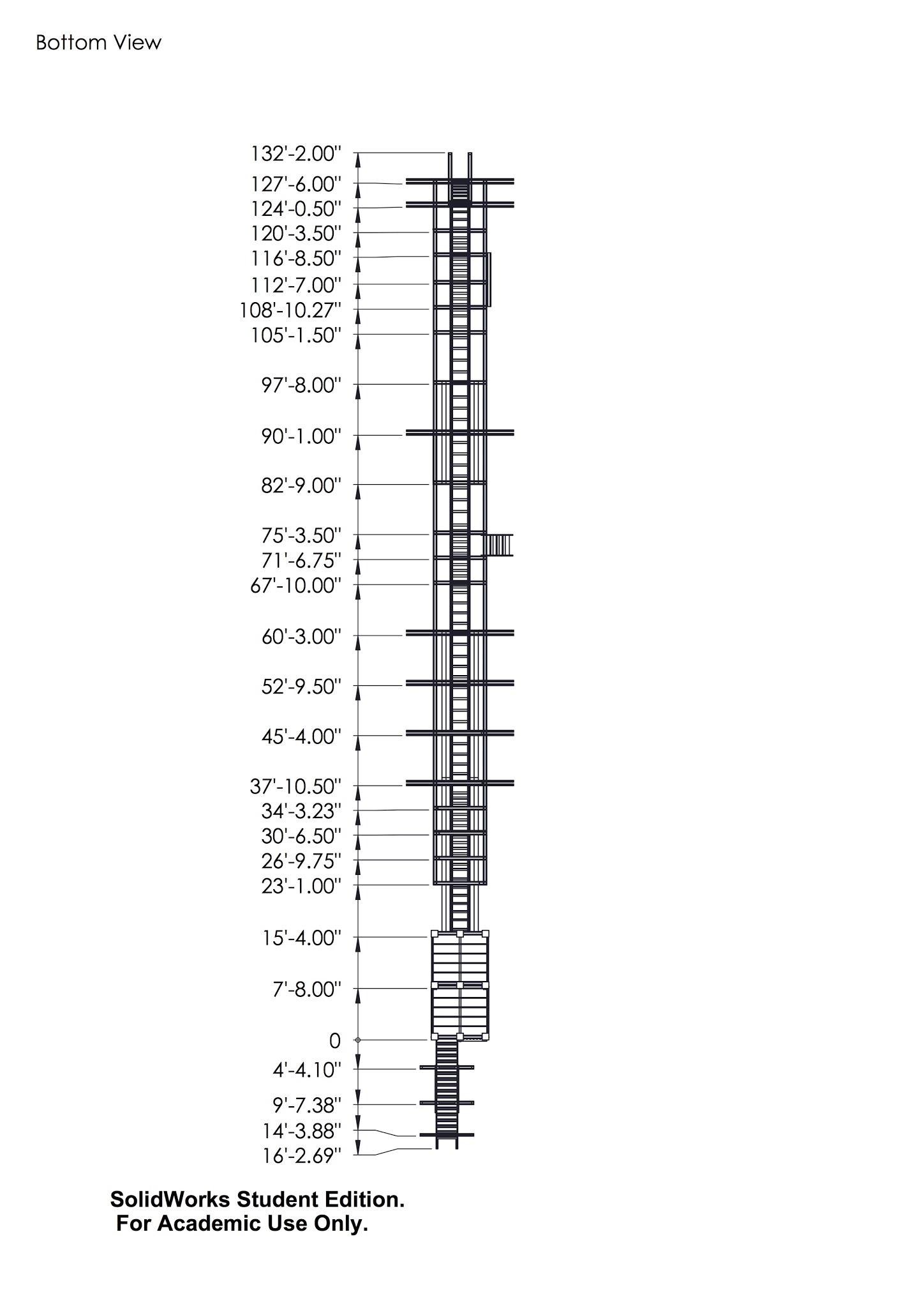 The tower posts were assembled to their full 28' length on the ground, bolted together, and then disassembled into halves. The lower half of each posts went up immediately. After the second level platform was built, the top halves of the posts were carried up and bolted on.