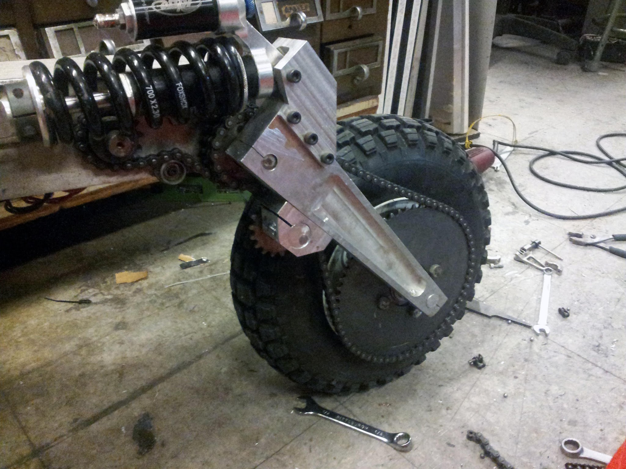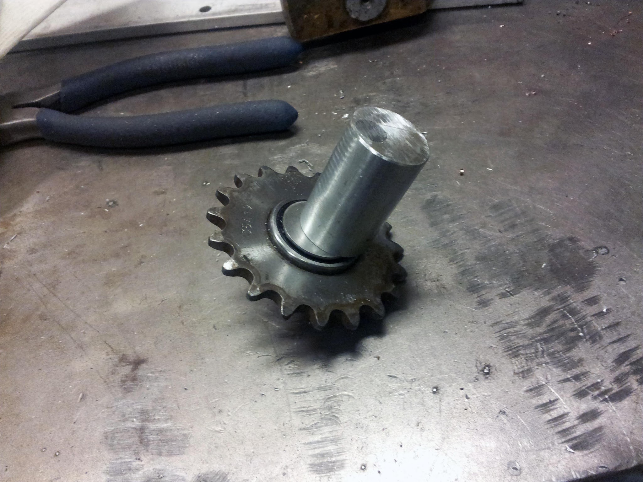 I added an eccentric sprocket on the drive-side swingarm for tensioning the chain: