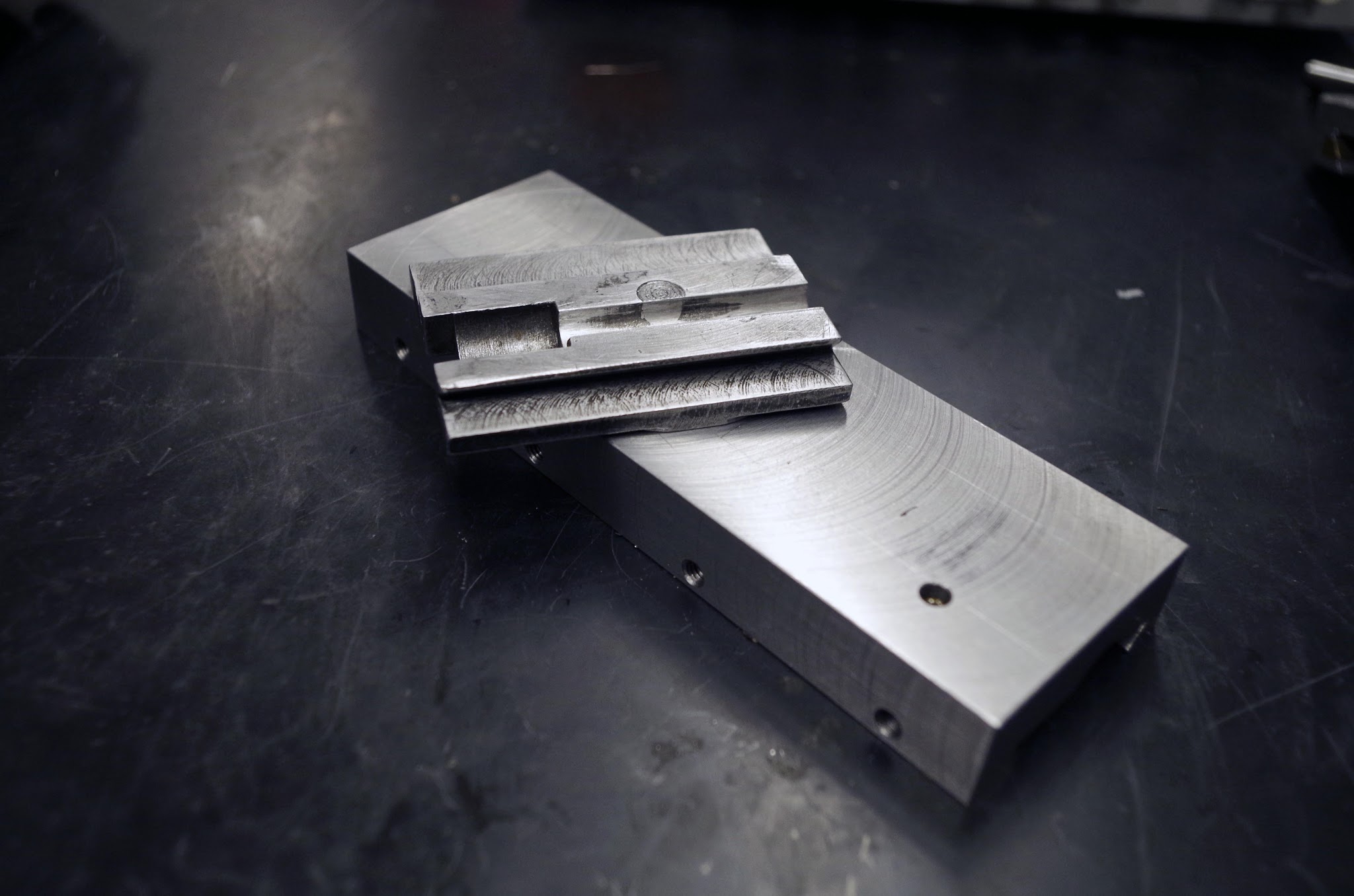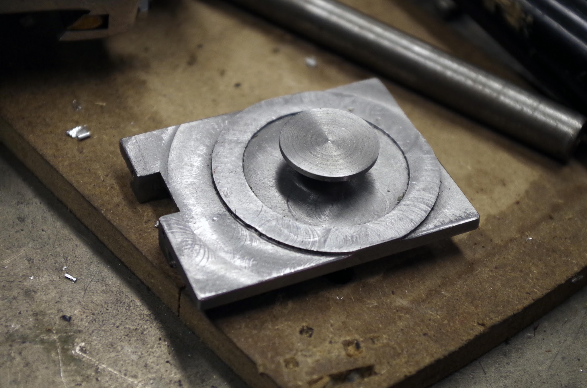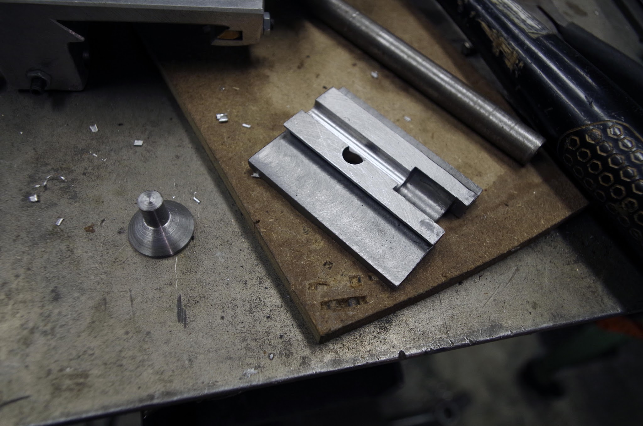 The compound was made from two pieces, a dovetail slide which holds the ball nut, and a cone-shaped base. The two pieces were silver-soldered together.