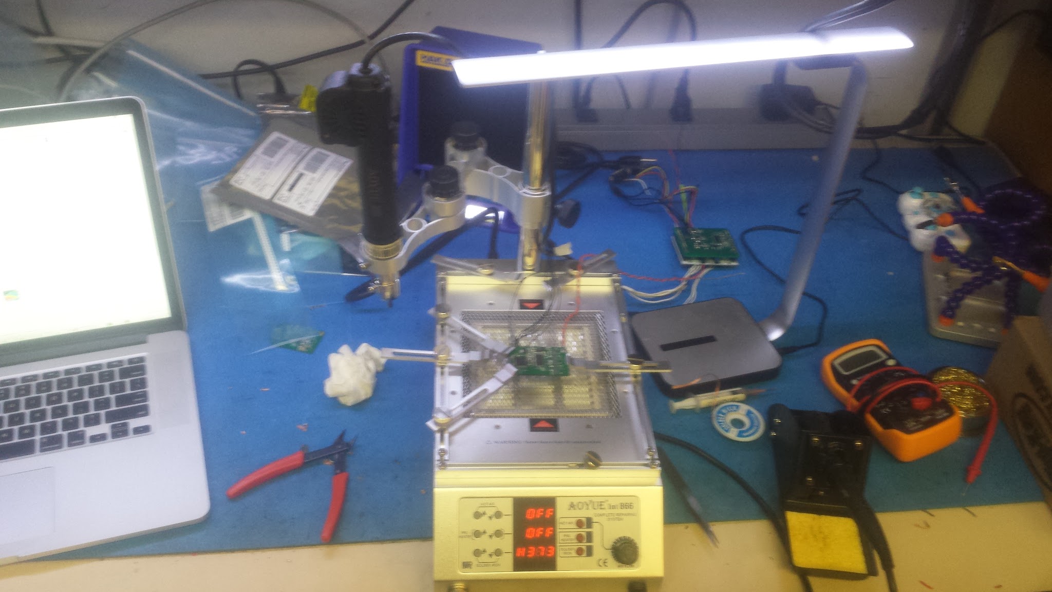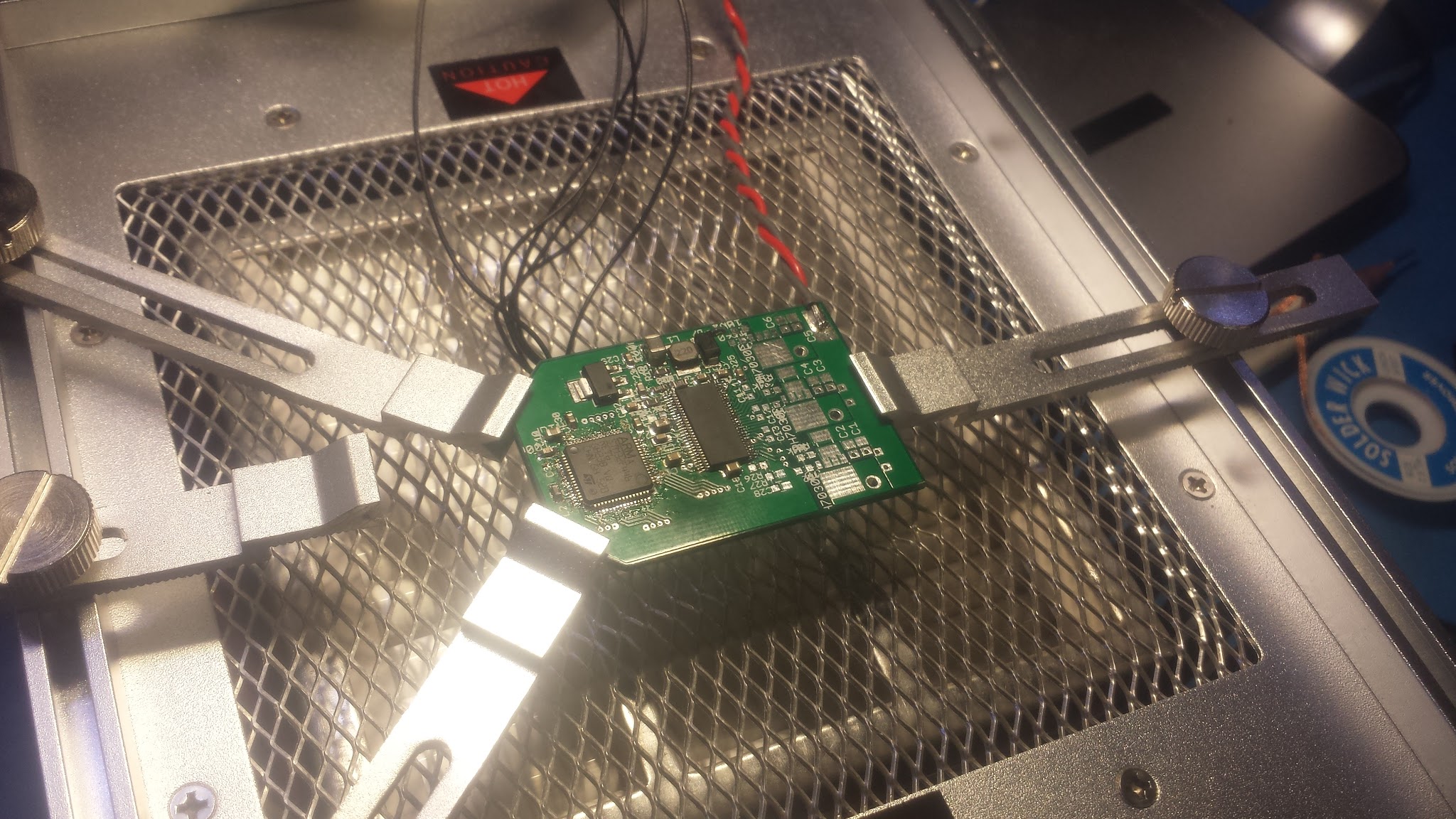 I waited a couple days after receiving the boards for the new MITERS rework station to show up. It has a heater below the board that preheats everything, and a hot air gun on an arm. Assembly, especially of the TSOP-package parts, was far more pleasant than first time around and turned out way better: