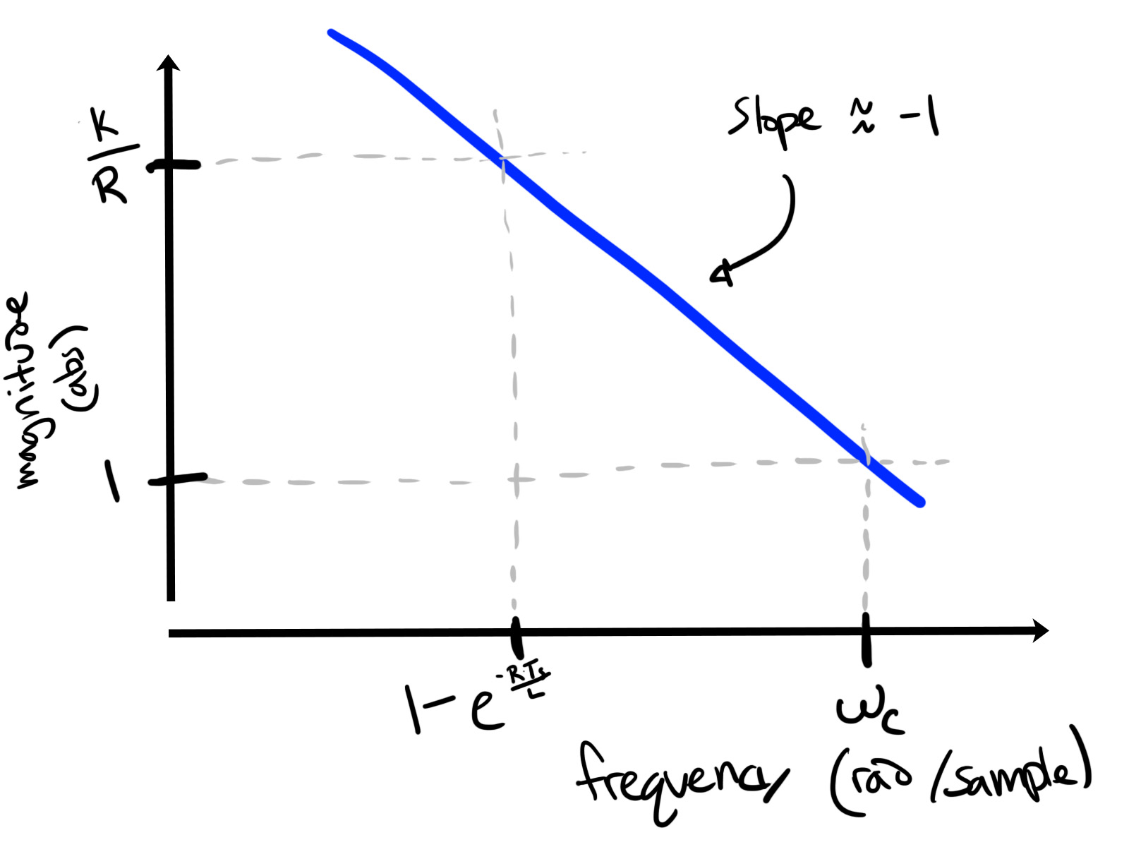 $$k=r\Bigg(\frac{\omega_{c}}{1-e^{\frac{-R\dot{}Ts}{L}}}\Bigg)$$
