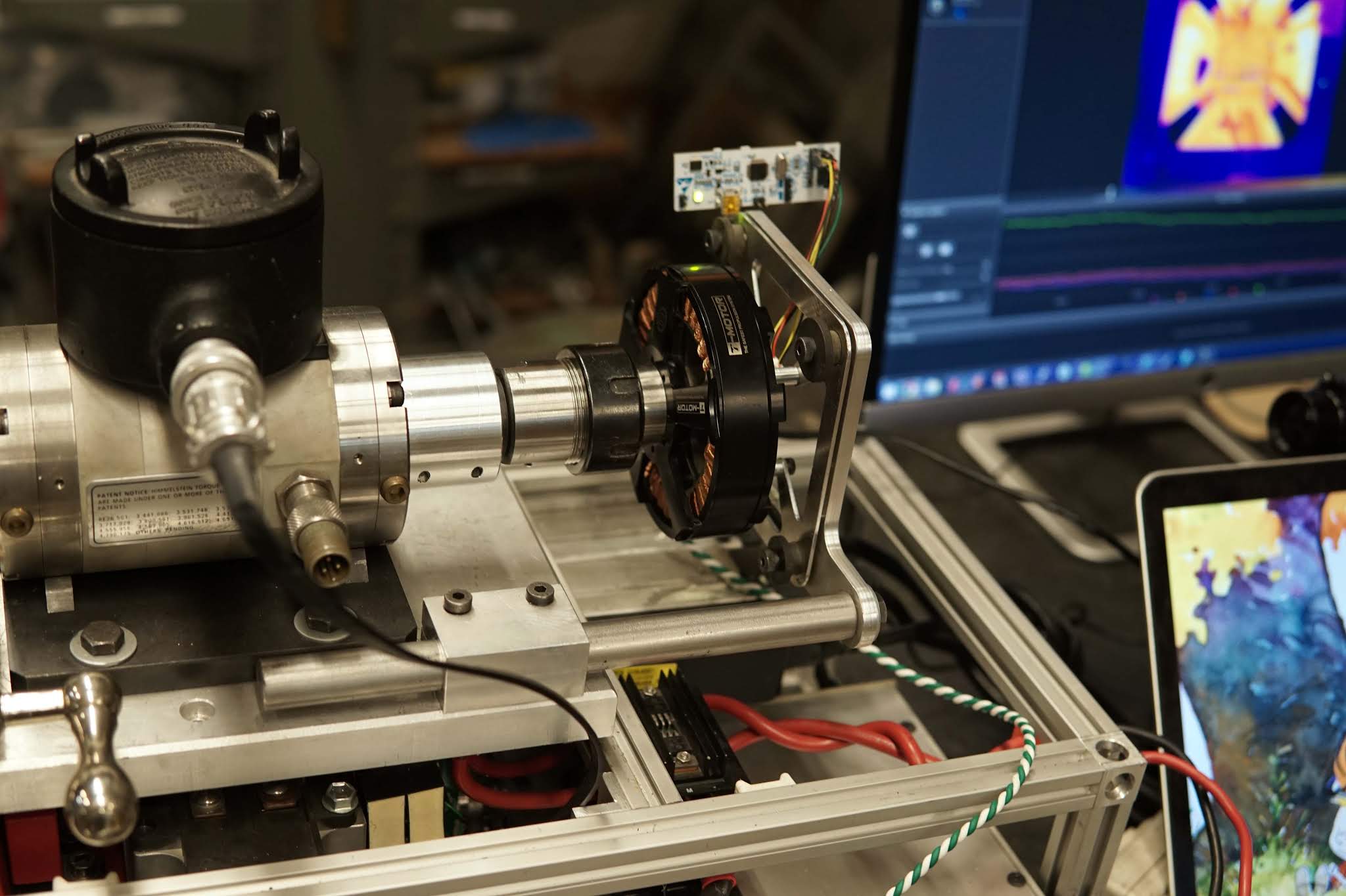 The test setup, with the motor and controller in view of Bayley's thermal camera