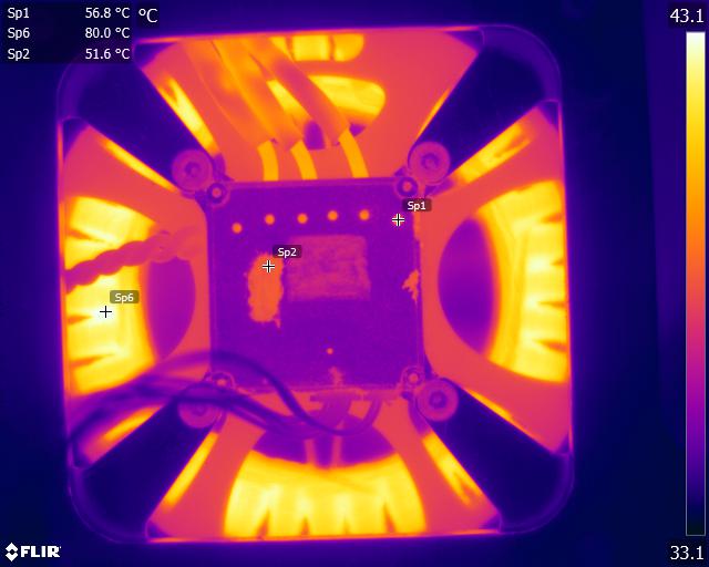Here's an example image You can see the transistors clearly through the holes. The bright spot on the cover where point Sp2 is is where I applied some matte black paint to get the emissivity of the aluminum cover closer to 1.