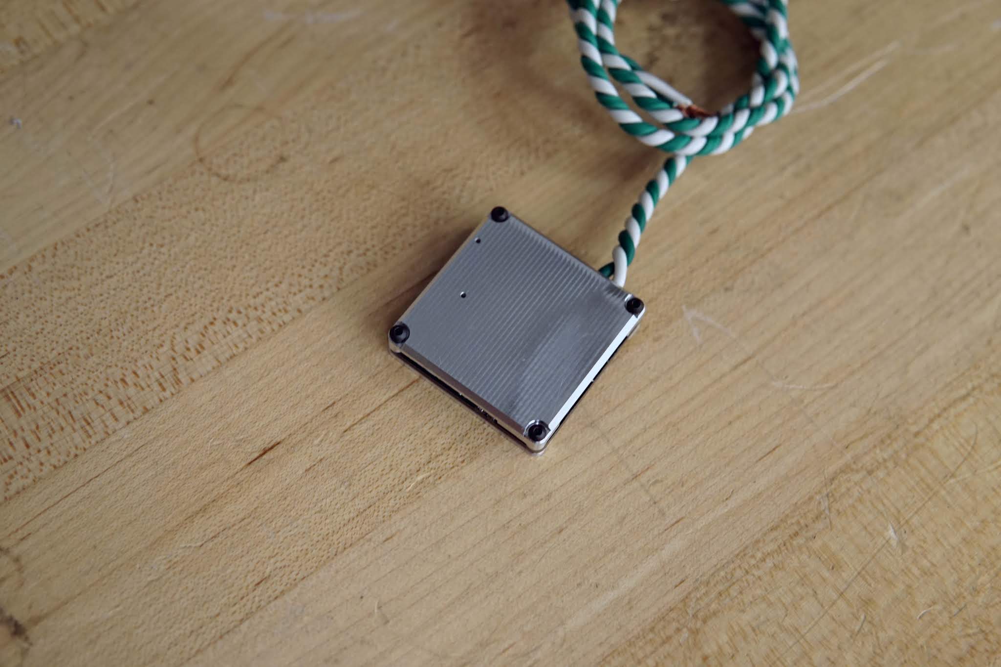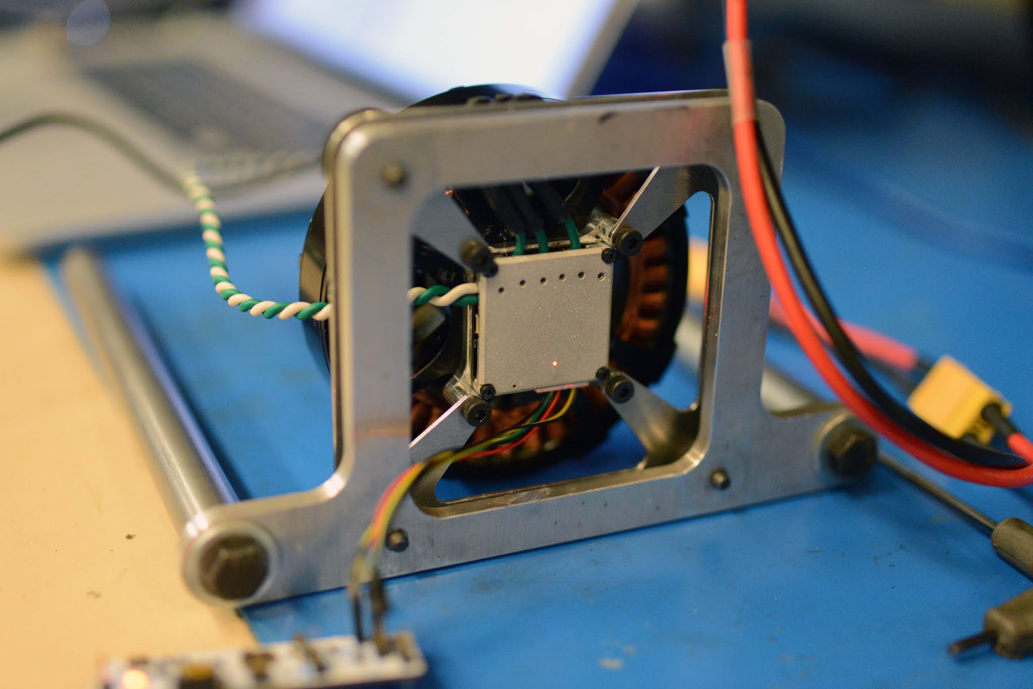 I made a Special Motor Controller Cover of Science to help out with thermal camera-ing. It has a 1.5mm hole drilled above the center of each transistor, so that I can see through the cover with the camera. I stuck it on the same controller and motor I used for the last round of testing. I was able to use a needle to cut away the circle of thermal pad at the bottom of each hole, so you can see straight through to the tops of the FET packages.