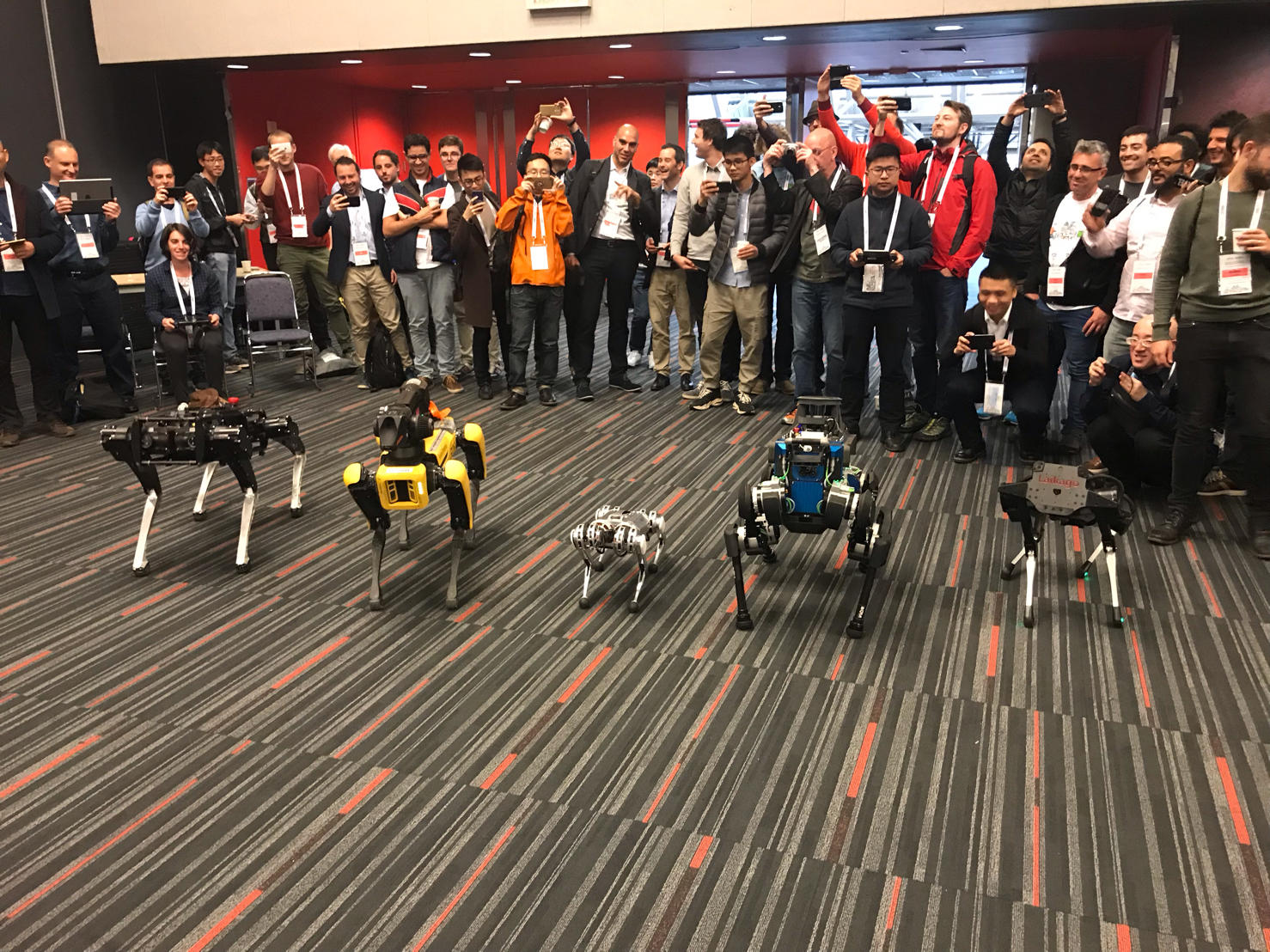 Here are a few other peoples' videos from the conference and the legged robot workshop. Despite being half the size of all the other robots, Mini Cheetah was running circles around them.