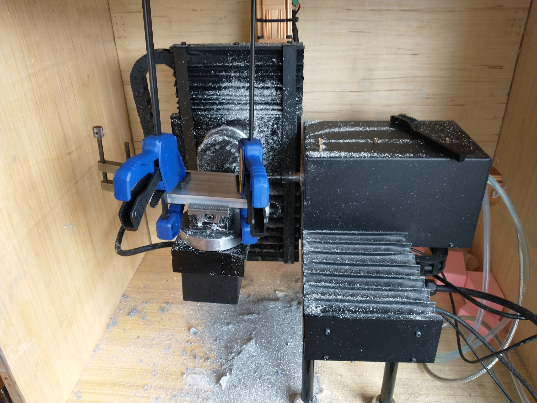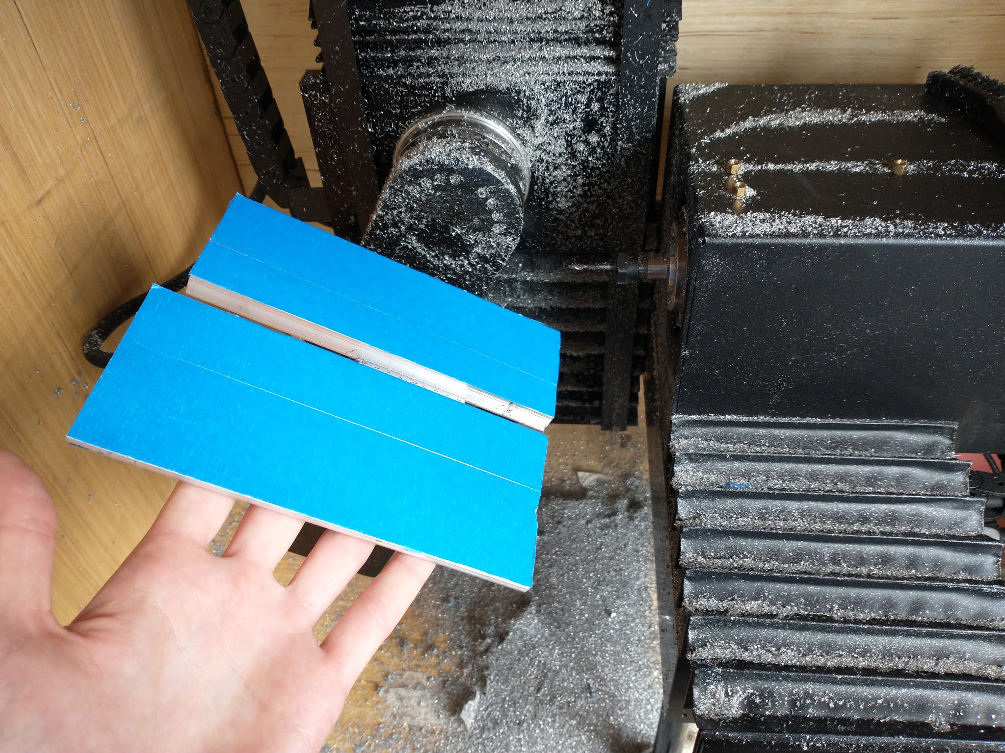 Using the super glue and blue tape trick to fixture some large (relative to the mill), thin parts. I normally used double-sided tape for stuff like this, but didn't have any on hand.
