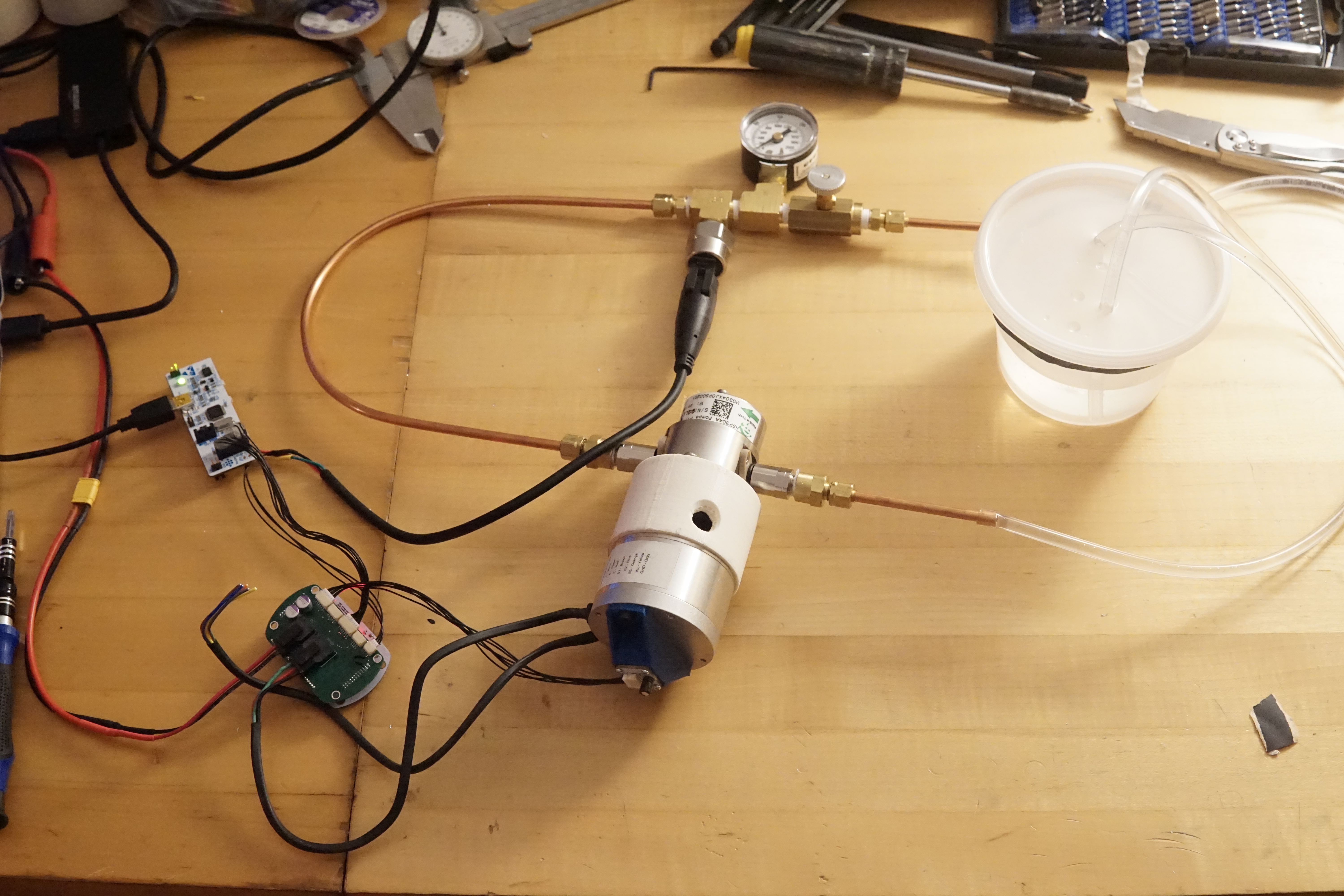 I modified a spare pendulum motor controller so I could plug in the pressure sensor. Eventually I'll have a separate micro for doing all the high-level control and use one of my usual motor drives with the built in encoder, but for now this was the easiest thing to hack together.