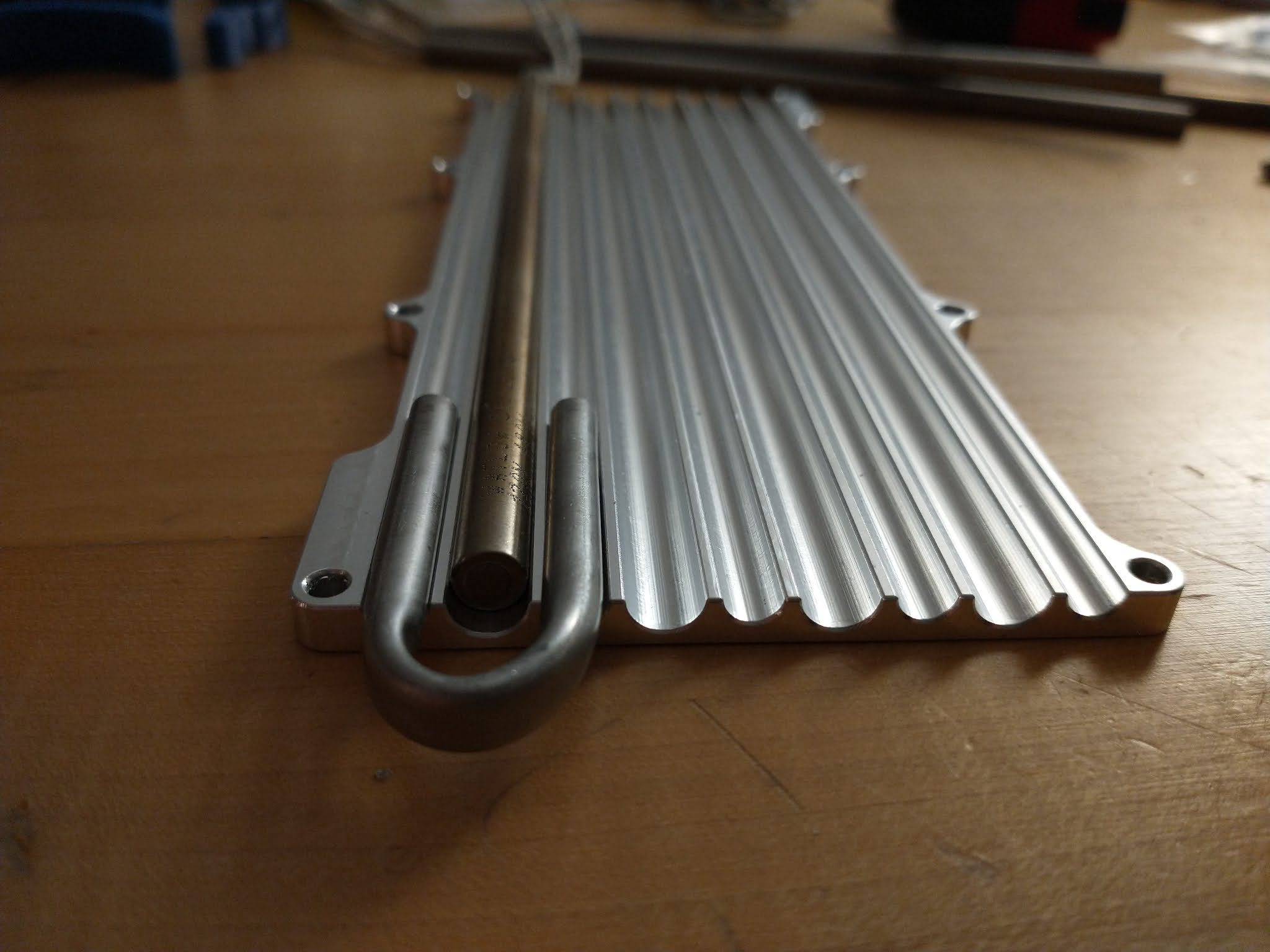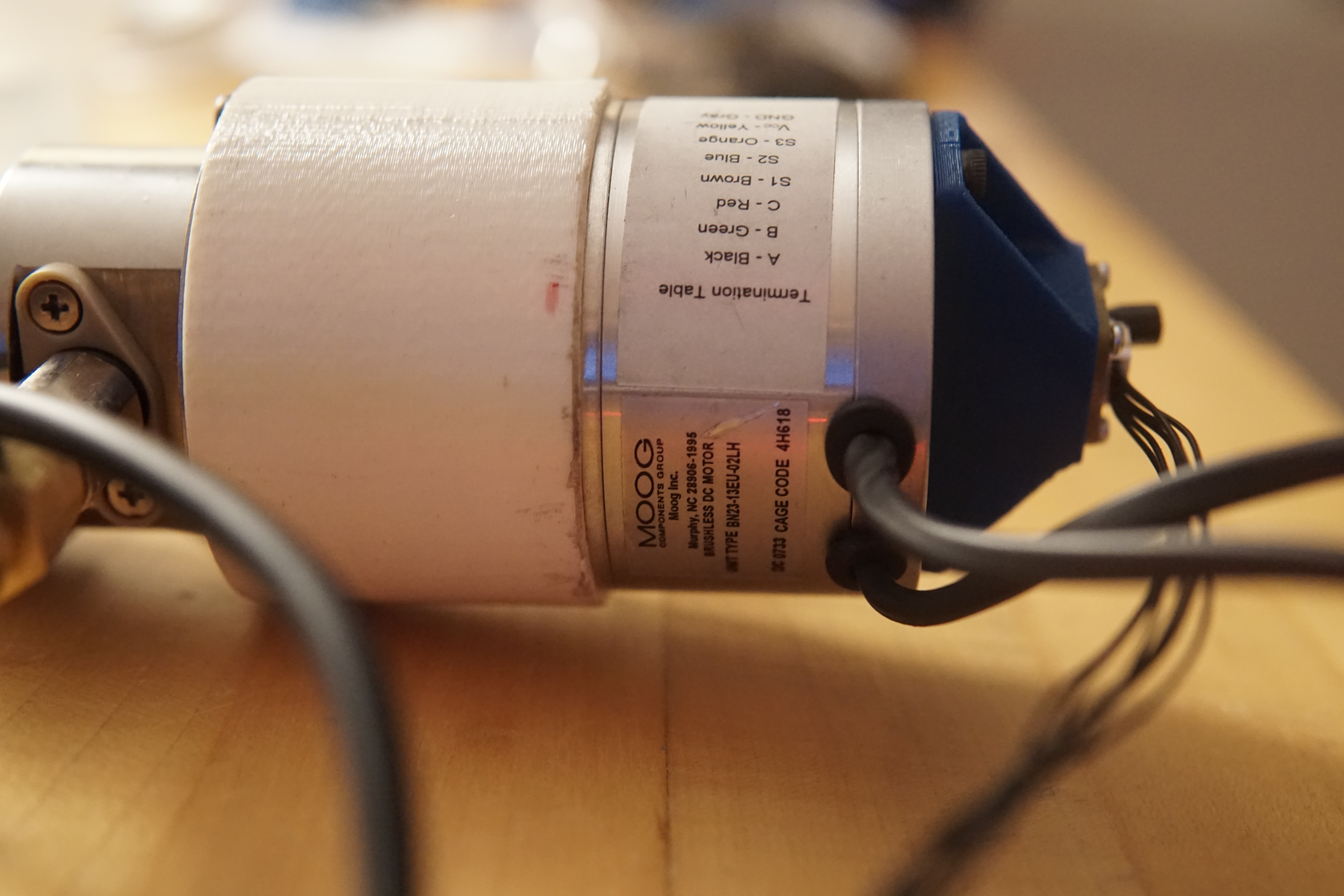 The pump came with a low-end brushed maxon driving it. I swapped that for a Moog BN23 Silencer motor I snagged from a Media Lab trash pile ~7 years ago. One of its larger brethren was used to power the tiny lathe, and another by Dane for Robot Art. A 3d-printed spacer adapts it to the pump. Eventually this'll need to be replaced with a more temperature resistant part, since the water flowing through the pump will get fairly warm.