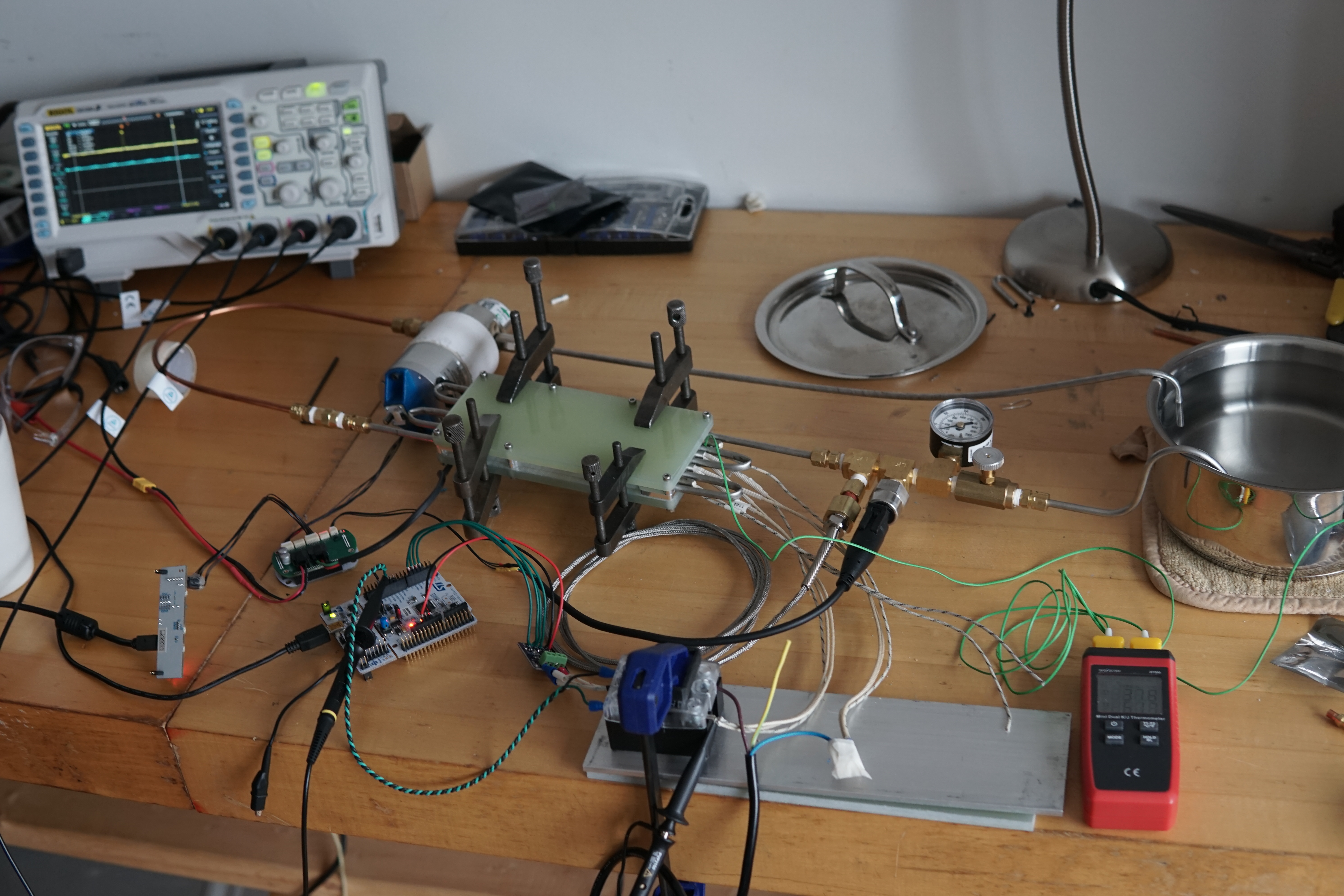 Testing closed-loop pressure control. The pressure is plotted/setpoint set from the computer, and you can see the response to the needle valve opening and closing. With this setup I can get around 10 Hz of closed-loop pressure bandwidth.