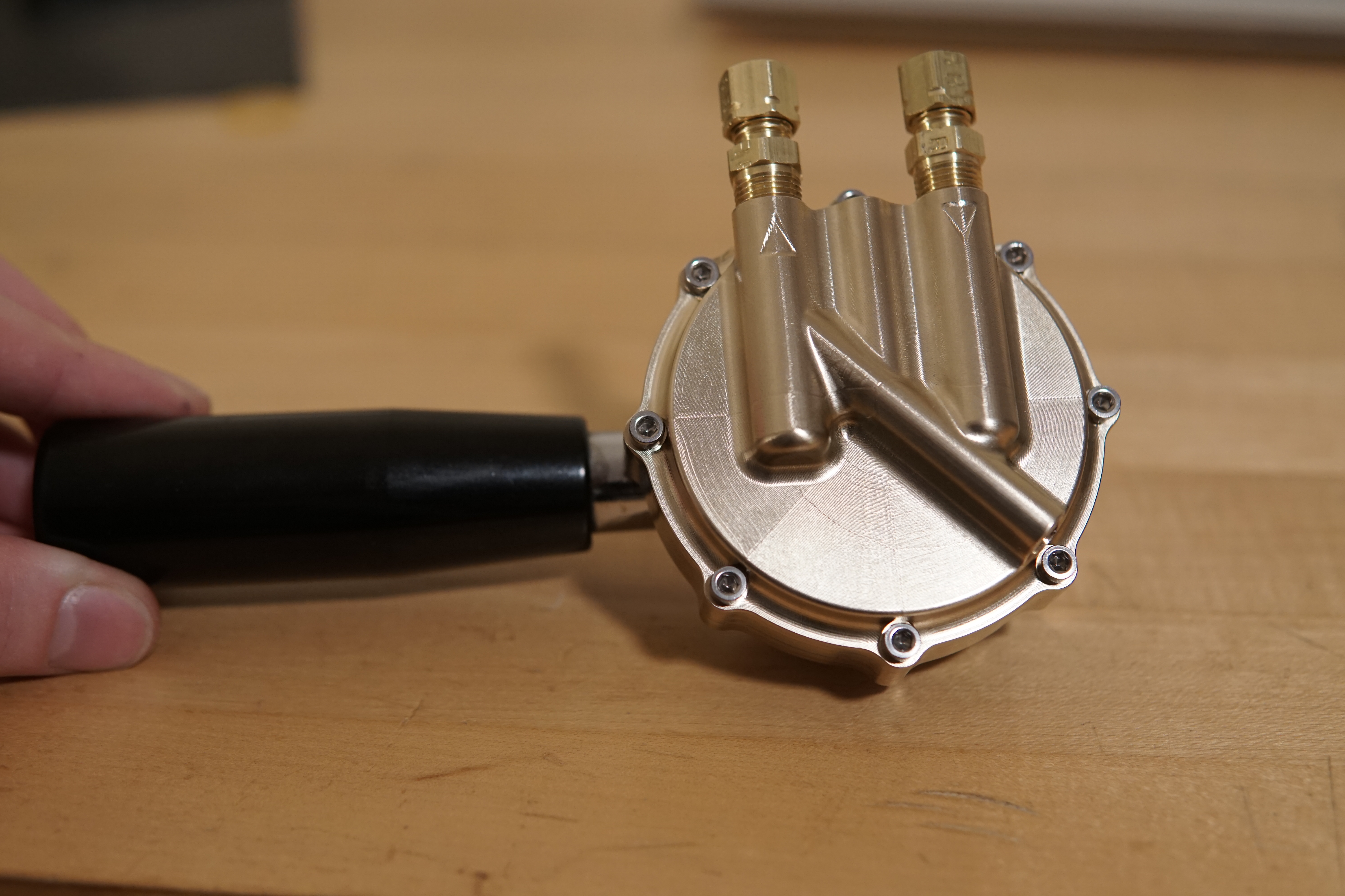 Gear pumps were my first though. What I wanted was "stainless steel body gear pump with PEEK gears", and it turns out that exactly this object exists and can be purchased on ebay for a few tens of dollars. Even better, they all are magnetically coupled, so there are no shaft seals to leak. A couple weeks later I had a Fluid-o-Tech MG304 pump.