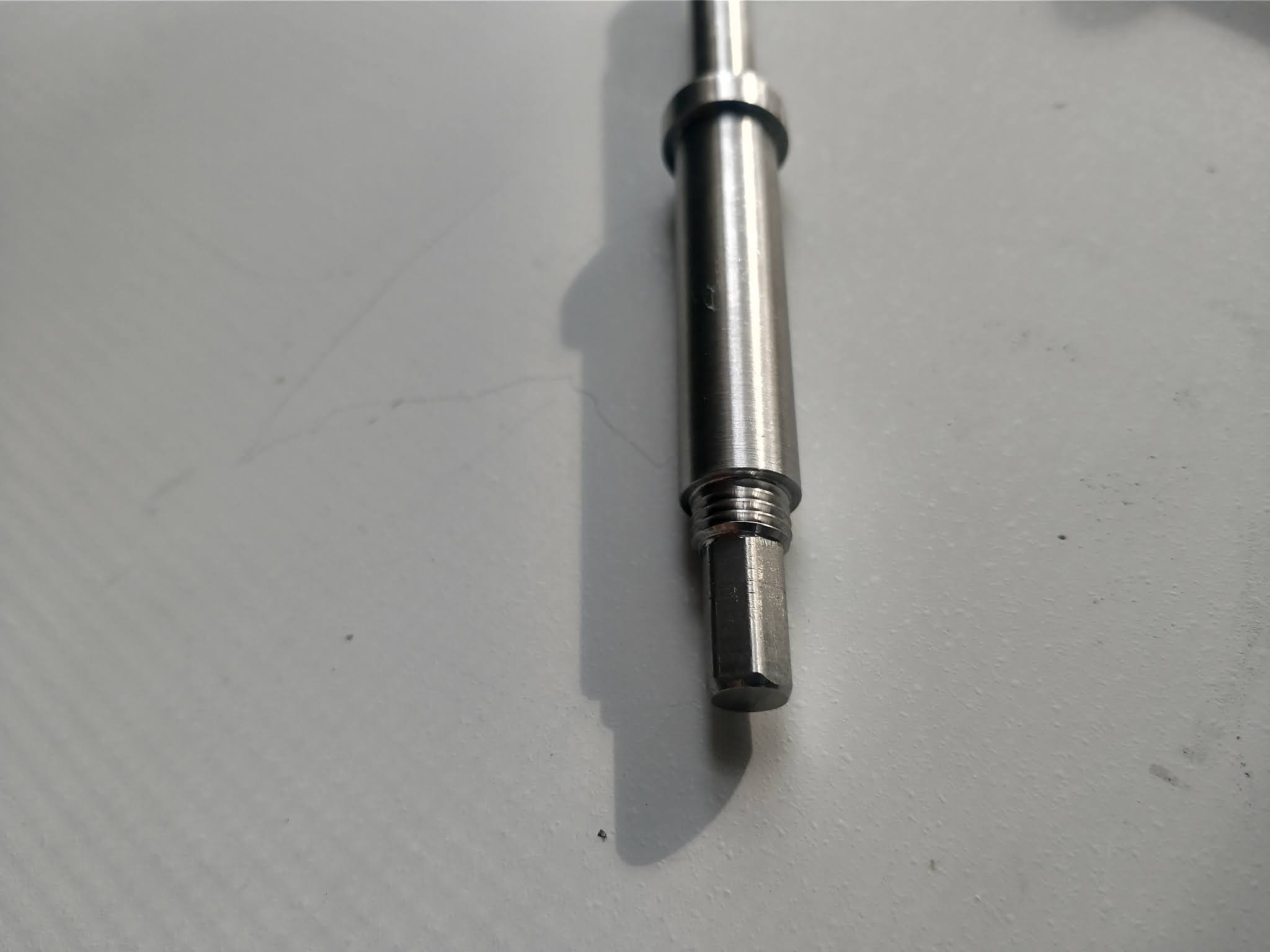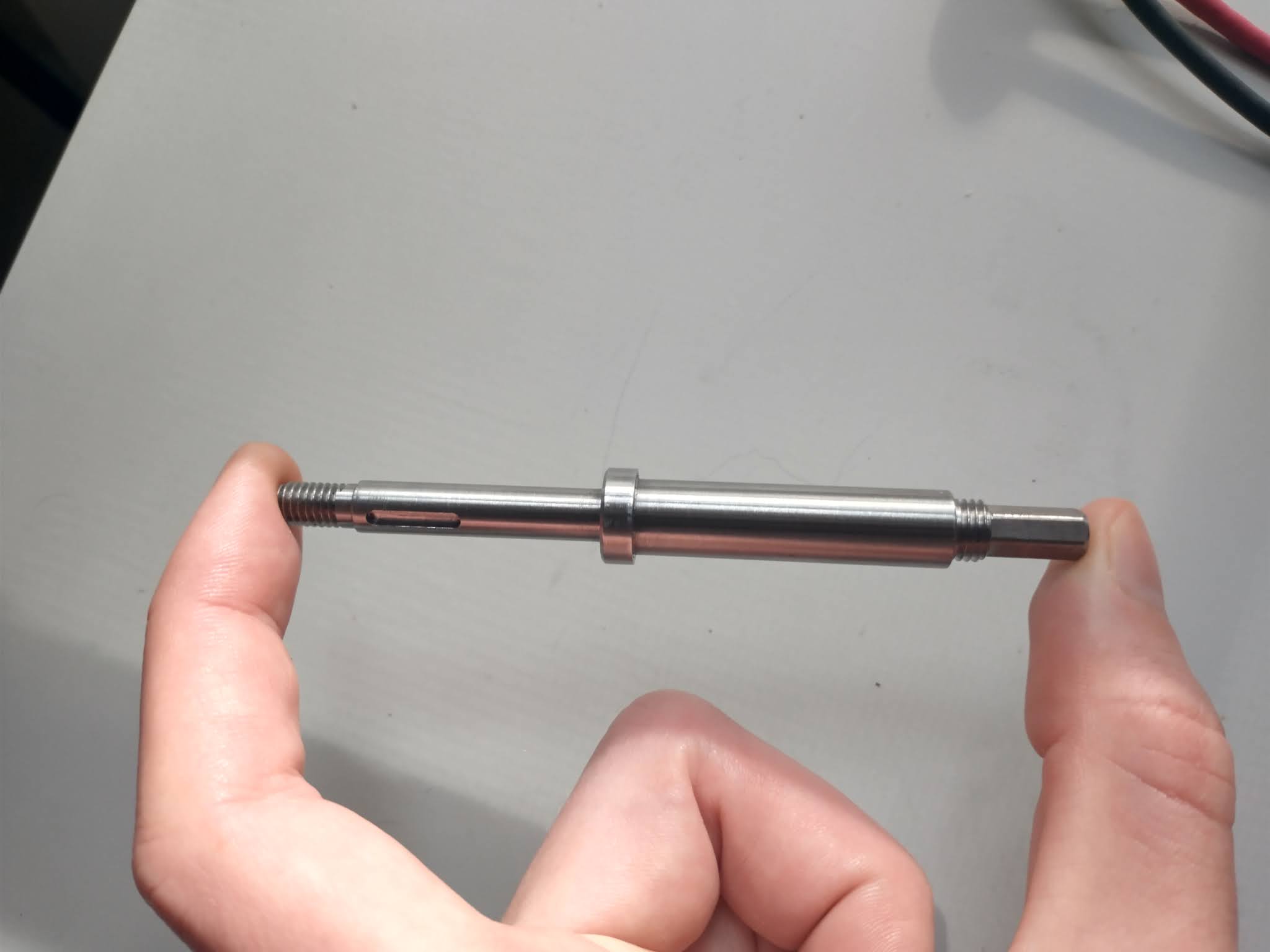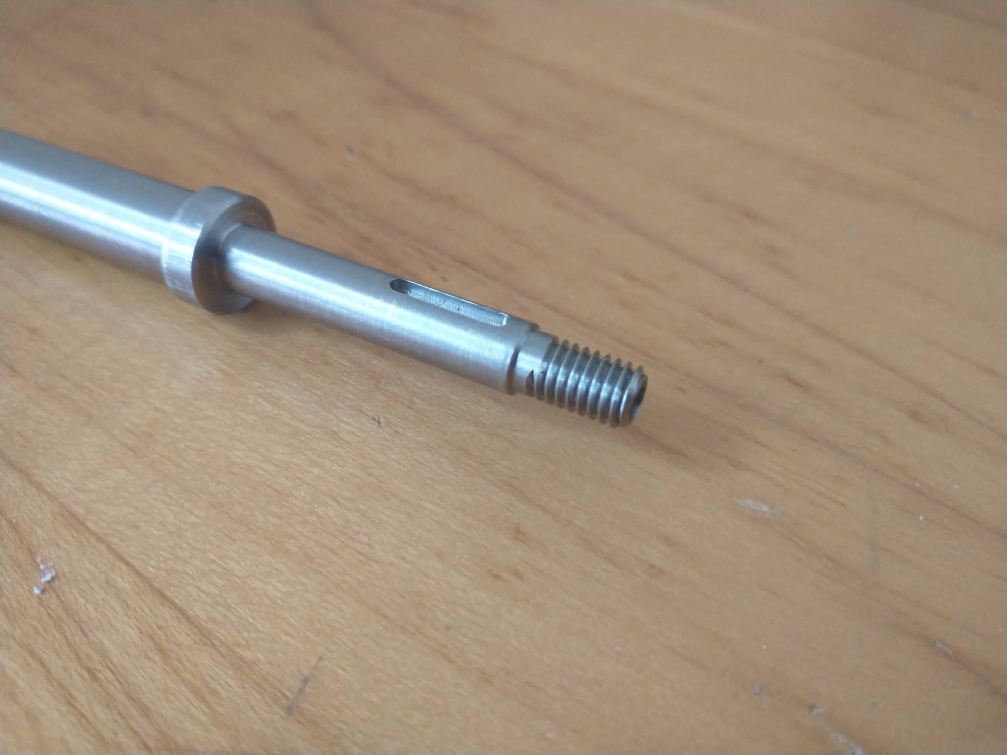 Making a stainless shaft. Nothing super fancy, but it turned out pretty nice so here are some photos. Turned on the tiny lathe, threads/hex/keyway done on the mill
