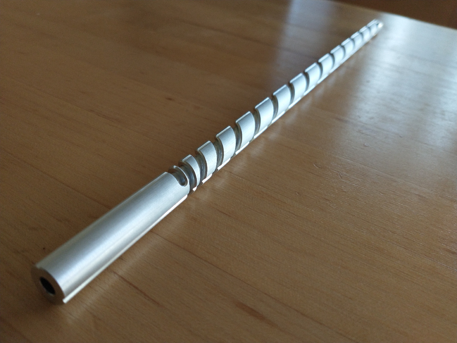 Here's an example of one operation done on one of the parts. For locating adjacent pieces and transferring torque, I put a hirth-esque coupling at the ends. The plan was to drill all the way through the center of each part and clamp the whole thing together with a long tie rod down the center.