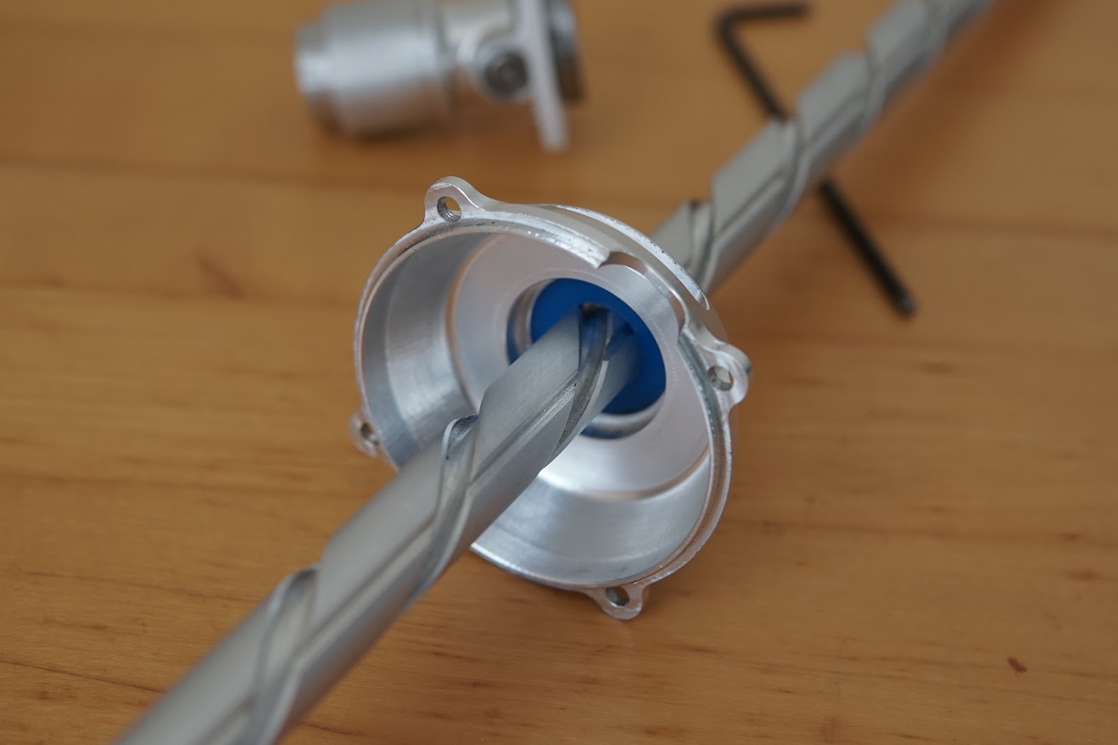 Here's how the part fits up to the motor assembly. The black ring at the end is another square o-ring bumper. I still need to make the guide rollers.