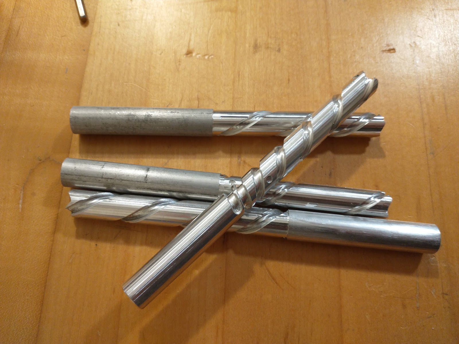 Machining the screw was quite a saga, and I actually ended up outsourcing the part. I could have eventually finished it with the approach I was taking, but it ended up not being worth it for now. It's the wrong shape for the 5-axis mill, so machining the full part required it to be broken into 3 separate pieces with two setups per piece, with extremely good alignment between operations required for smooth cam surfaces. I did think about building some sort of dedicated rotary-CNC contraption, or rigging some mechanism to one of the local bridgeports with an encoder and motor driven rotary axis - maybe if I want to be able to rapidly revise this part I'll revisit one of those ideas.