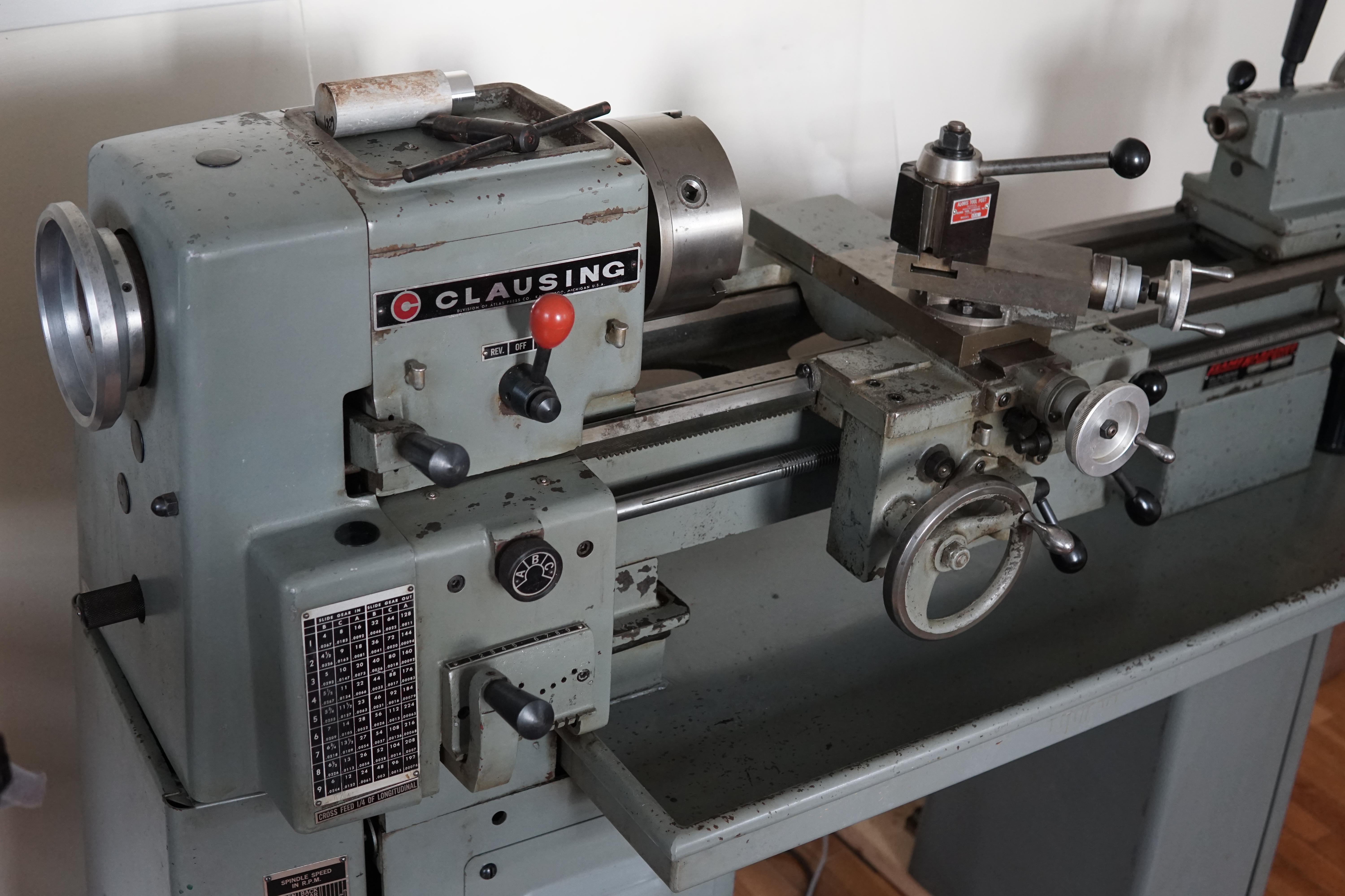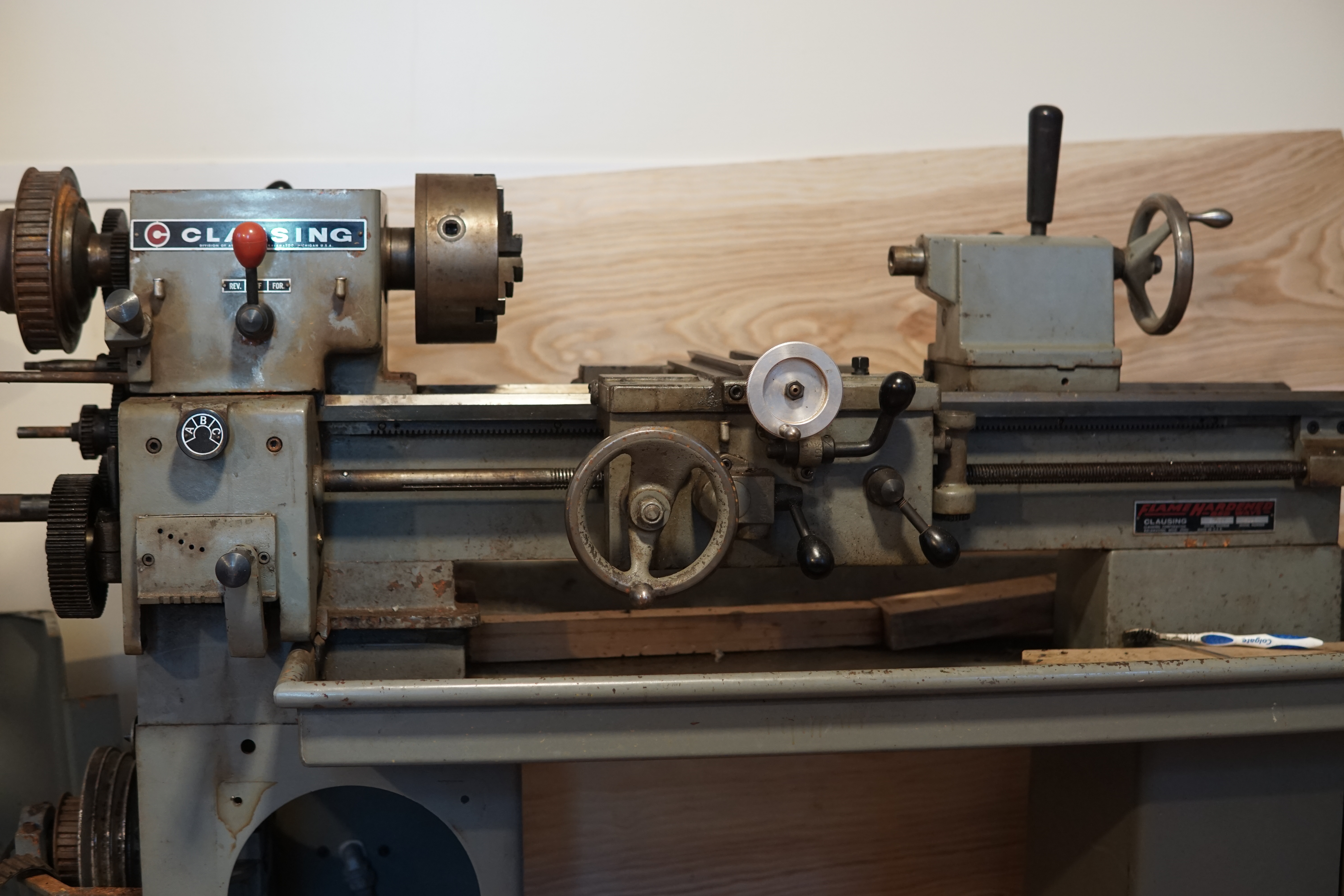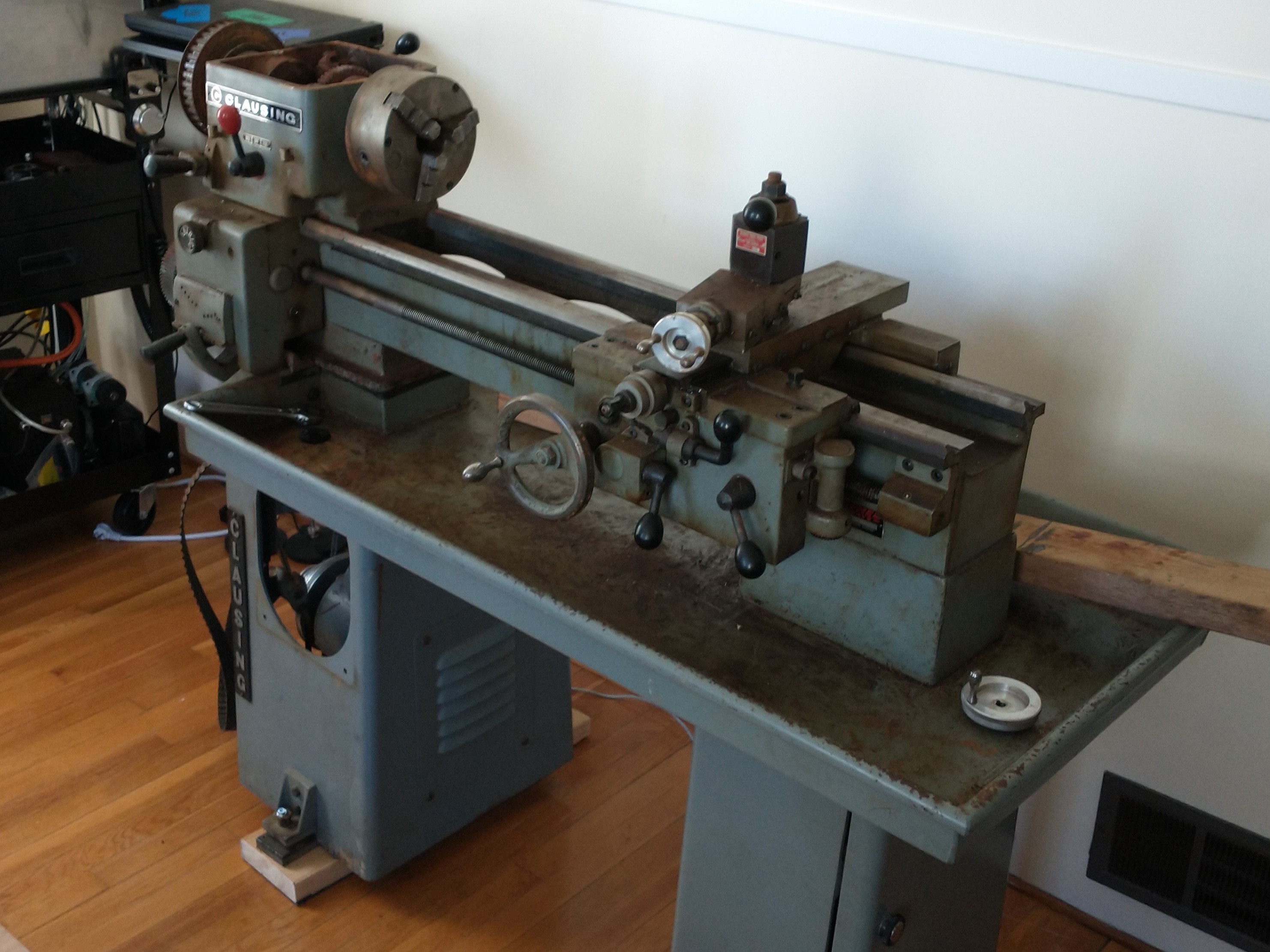MITERS has a Clausing lathe of the same era, a 6918, which looks almost exactly the same but scaled up around 50% in every direction - from the original pictures I saw, I was expecting something more like the MITERS-lathe.