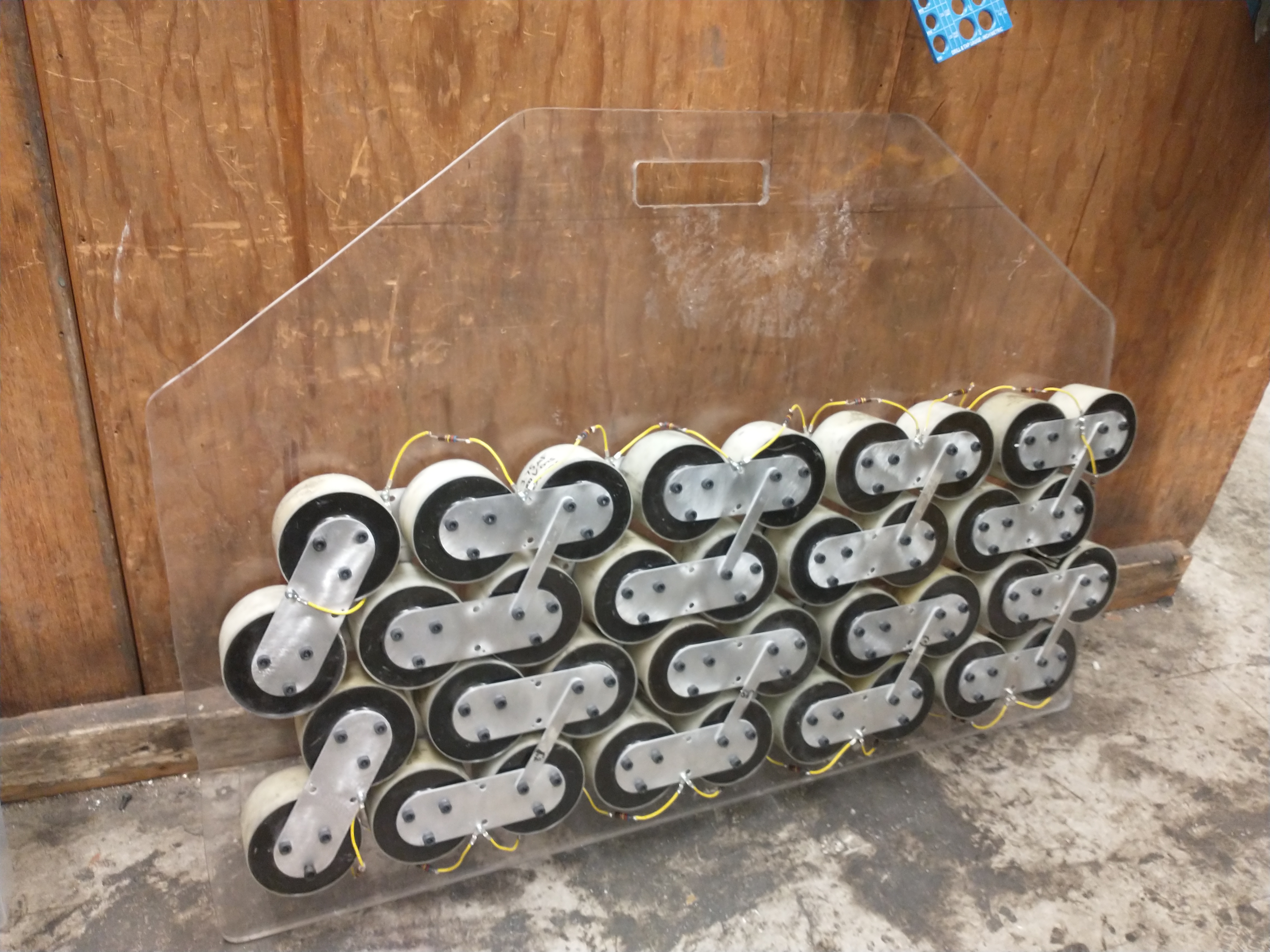 Another CPW, another round of tesla coiling. Last time the primary capacitor caught on fire, so I helped Michael and Austin cobble together a new one out of the Eurofarad caps the coil originally used. I designed some bus bars and MITERS undergrads got them waterjet cut for us.